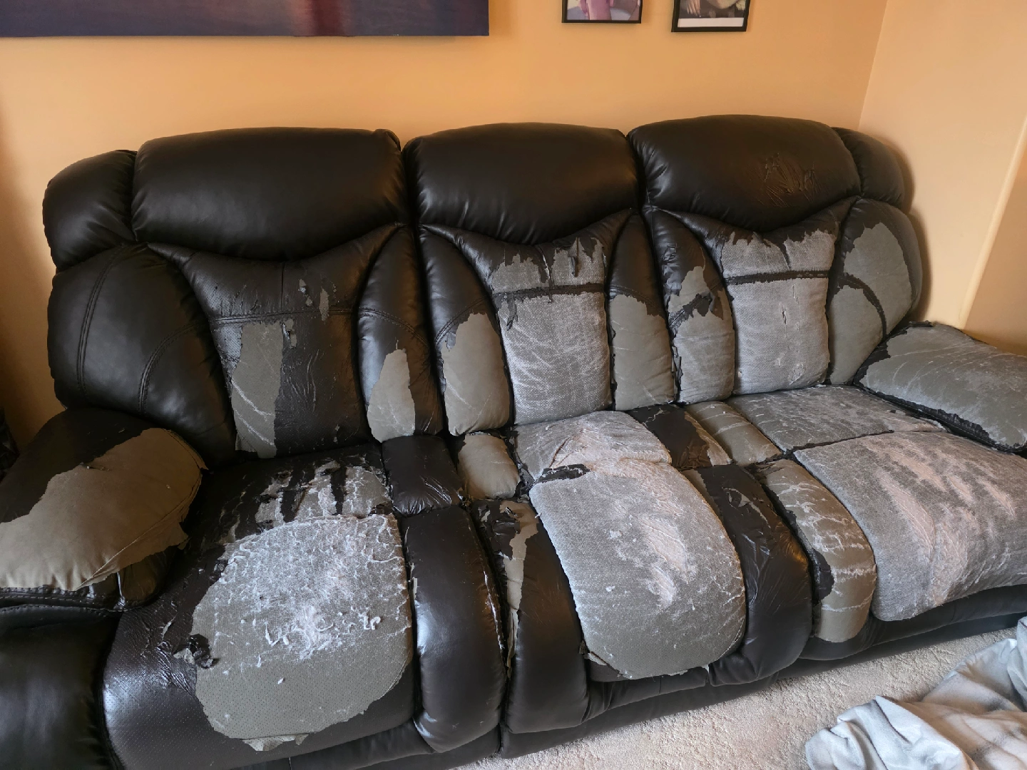 5This is a super-used brown leather couch, electric recliner with signs of heavy wear. It could be a great project for someone looking to reupholster or repurpose a piece of furniture. Please see the photos for a better idea of the condition. It is sold as it is, but all the electrical part works perfectly, and is really comfortable actually. 500$ each or all together.