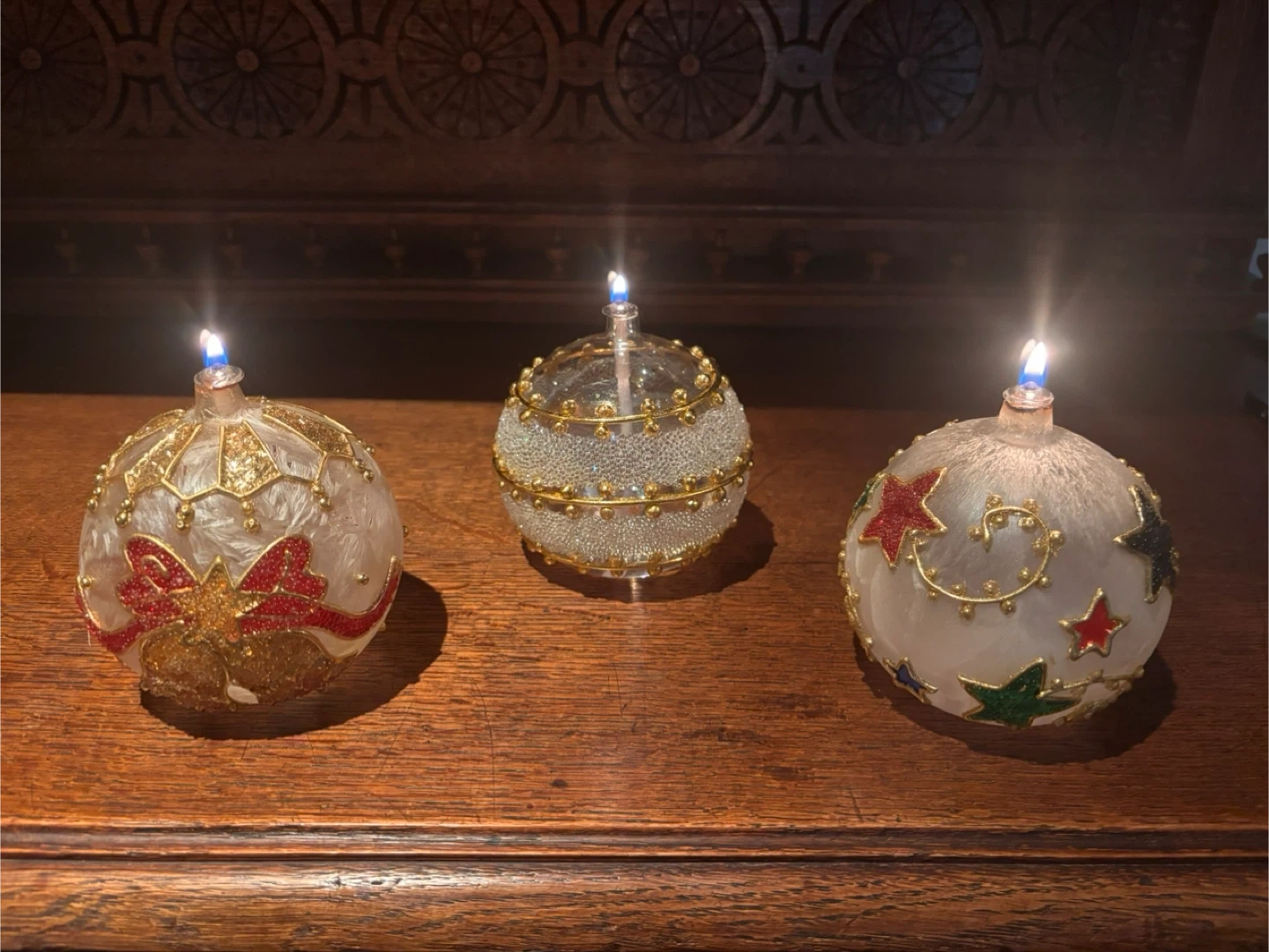 Show all3 Vintage Xmas Glass Oil Lamps (balls)🥕