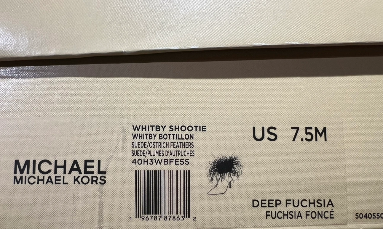 NEW Michael Kors Whitby Feather TrimSuede AnkleBoot 7.5