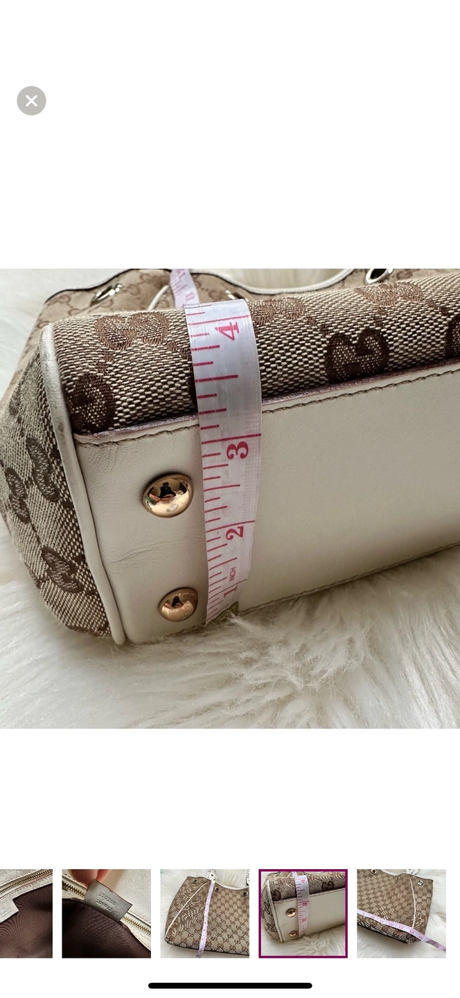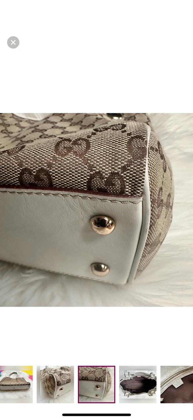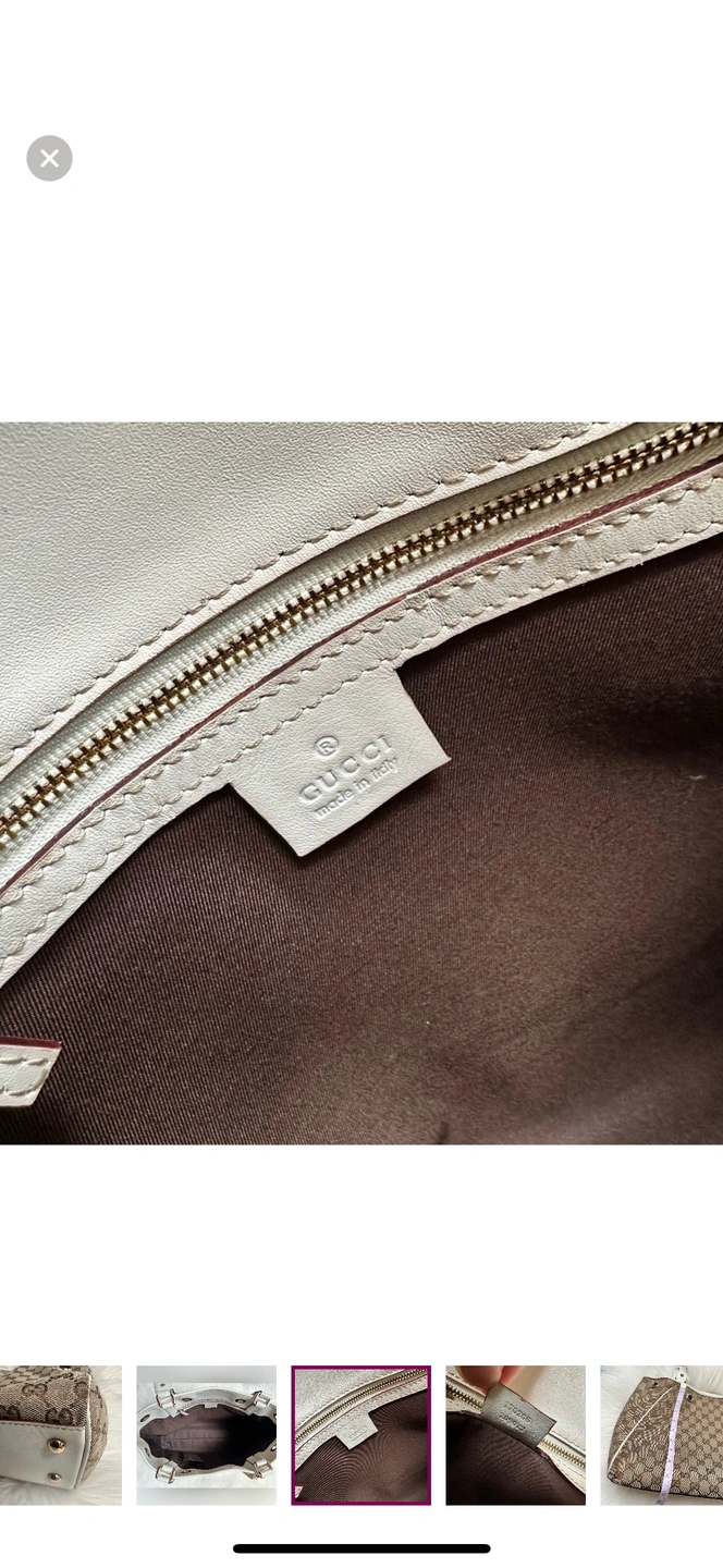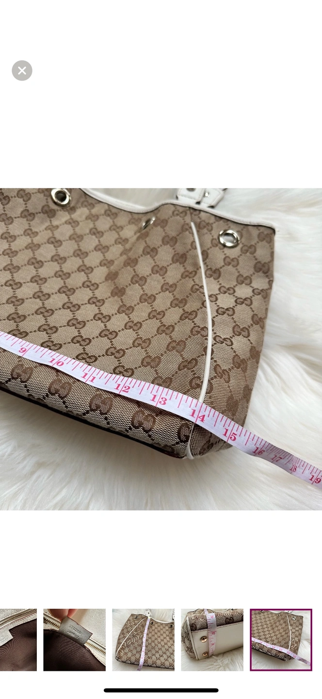 This is a classic Gucci tote bag with braided leather handles and a GG canvas body. The bag features a top zipper closure and a spacious interior. It is perfect for everyday use or for special occasions.