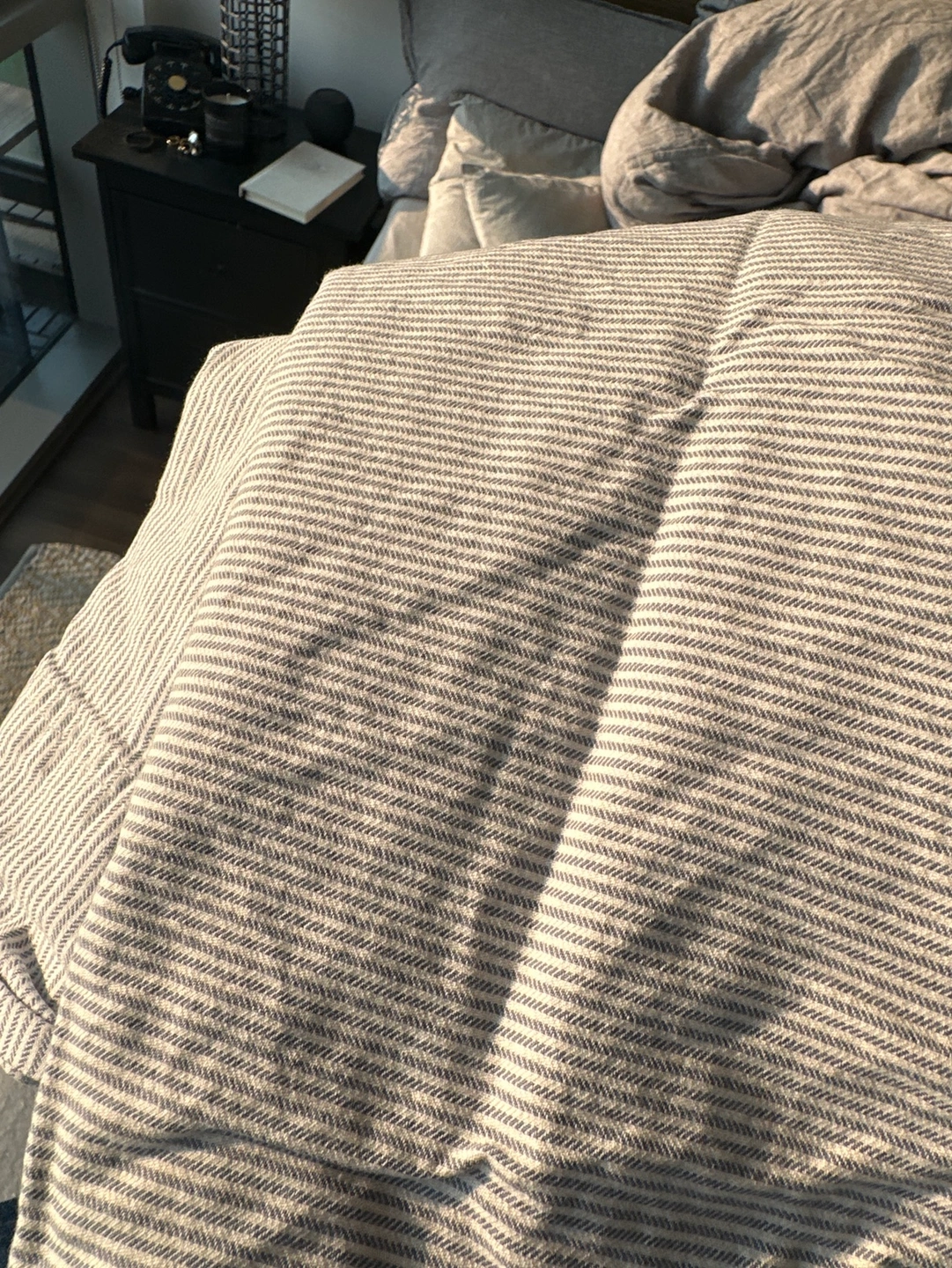 These are soft, cozy pillowcases with a striped pattern. Good hefty fabric. Made by Ralph Lauren.