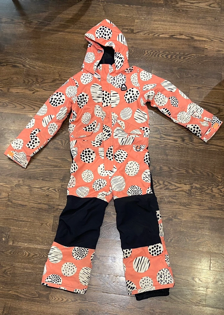 Washed and cleaned. We use the grangers tech wash on the snowsuits so soils pictures. Note rhey are harder to remove until the tech wash coat is off… and it still has a light proof on there. but overall solid snowsuit and my girl was warm for her weekly trips to Barrie