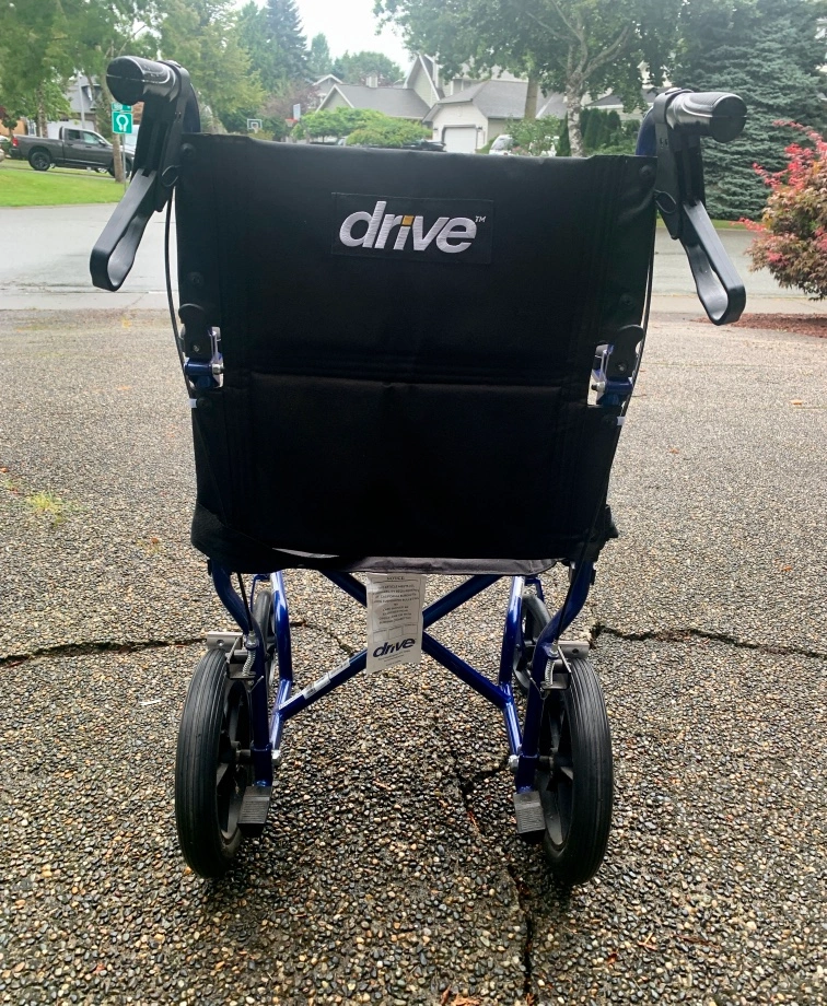 Although the Expedition 19" Aluminum Transport Chair in an attractive blue by Drive Medical weighs only 19 pounds, it supports up to 300 lbs. This transport chair comes standard with 12" rear flat free tires to provide a stable ride over a variety of terrain. The companion activated wheel locks and seatbelt make the Expedition Aluminum Transport Chair safe and easy to use. The Expedition folds down flat for convenient storage and transportation.
