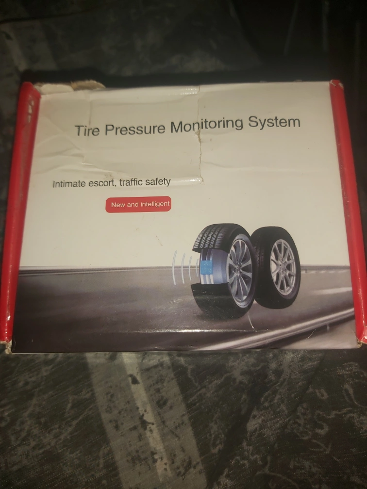 Tire Pressure Monitoring System, includes display, and four sensors. The system includes a USB port for charging the display. The display is solar powered as well.