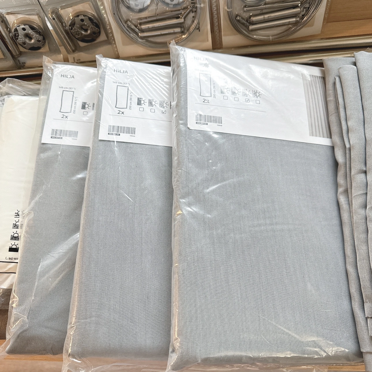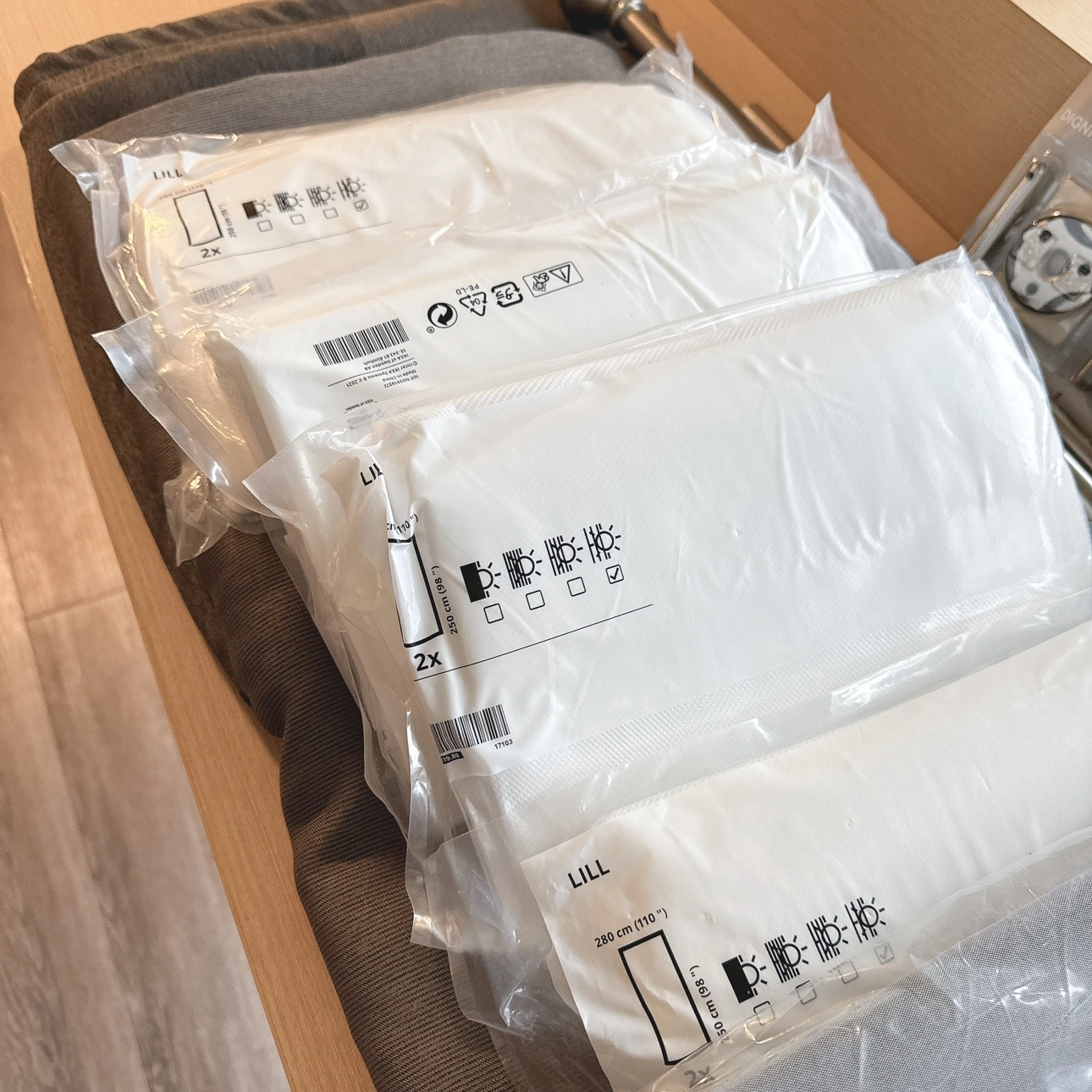 Everything is still in its original plastic wrap, except for **two pieces** we opened: one HILJA plastic curtain and one LILA lace curtain. We ultimately decided they weren't the right fit for us, and it’s past the return period, so this is your chance to get a great deal!