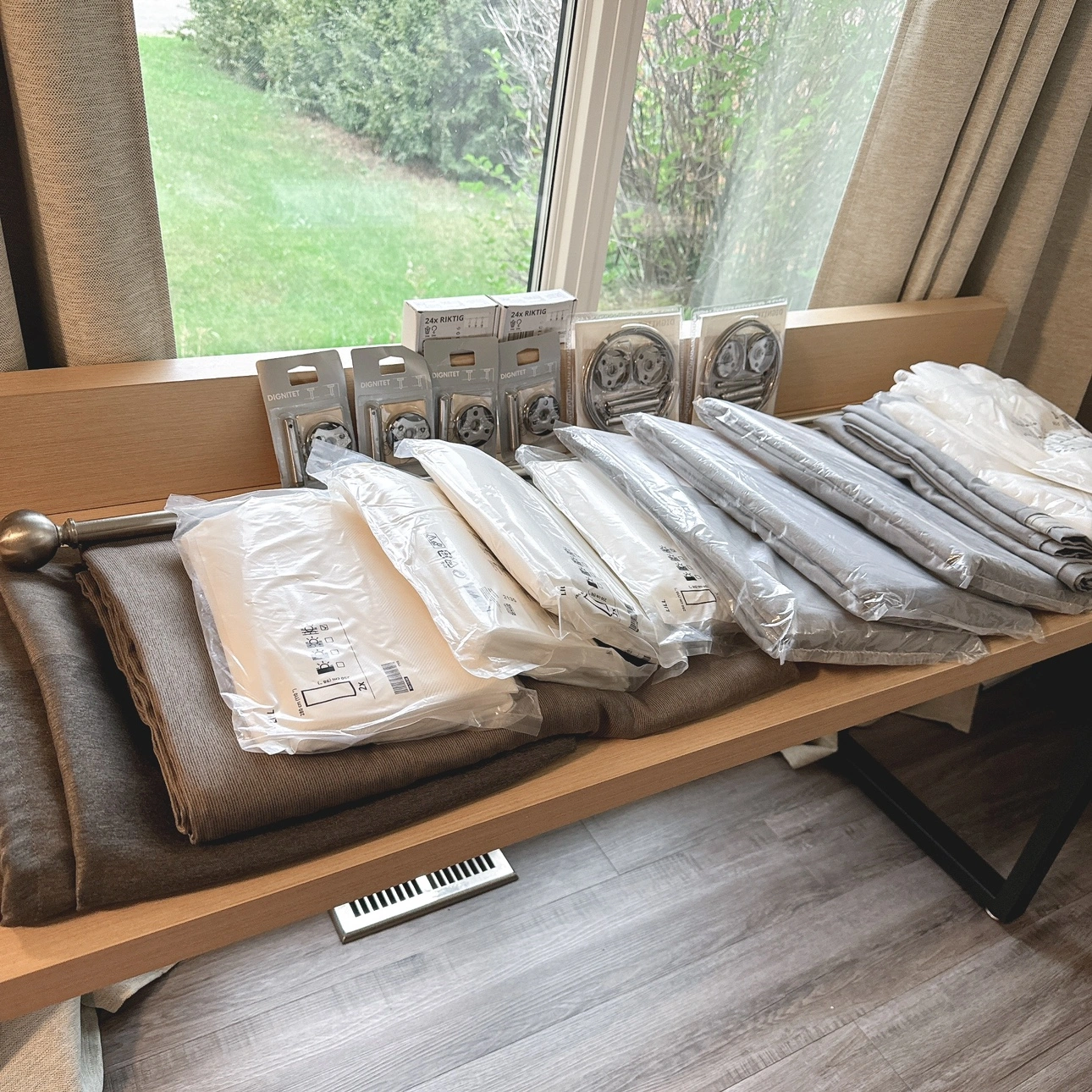Everything is still in its original plastic wrap, except for **two pieces** we opened: one HILJA plastic curtain and one LILA lace curtain. We ultimately decided they weren't the right fit for us, and it’s past the return period, so this is your chance to get a great deal!
