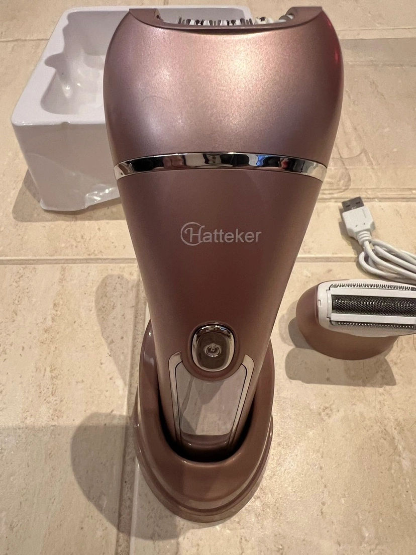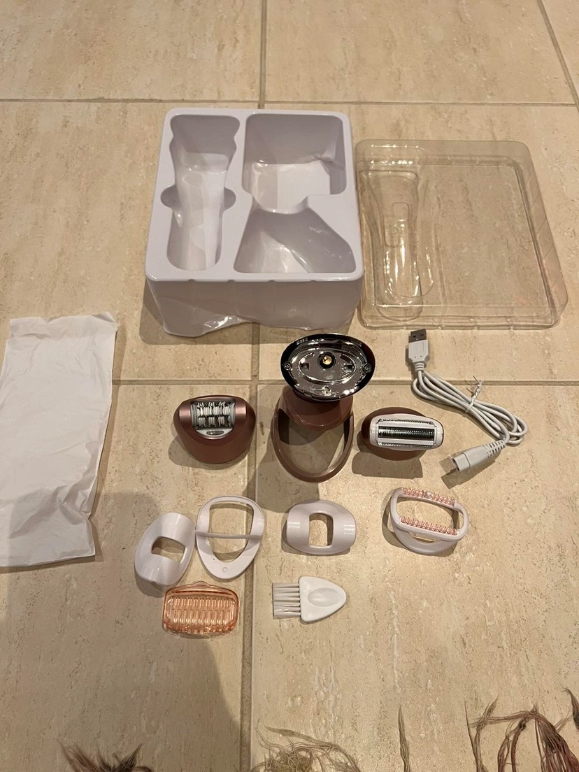 This is a cordless rechargeable epilator with multiple attachments. It is in good condition and comes with all of the attachments shown in the pictures.