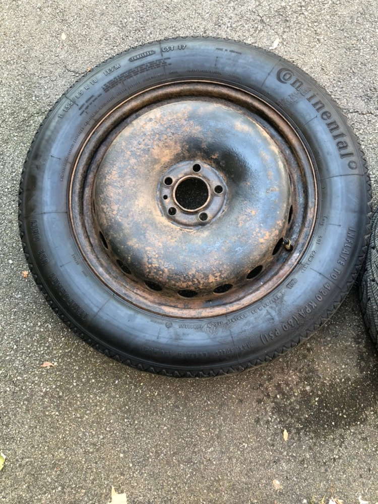 Spare tire with rim. Tire is in good condition & never been used on the car. Other tire no rim, 215/50R17, good real spare tire in the trunk.