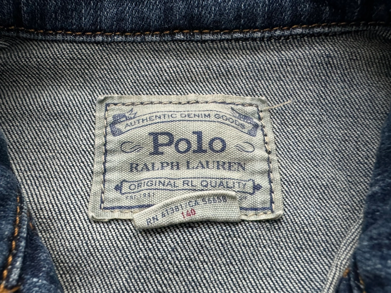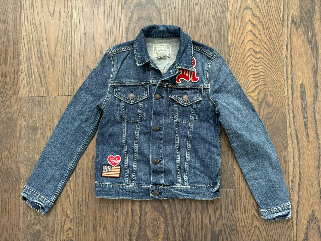 This is a vintage Polo Ralph Lauren Kids denim jacket with patches.