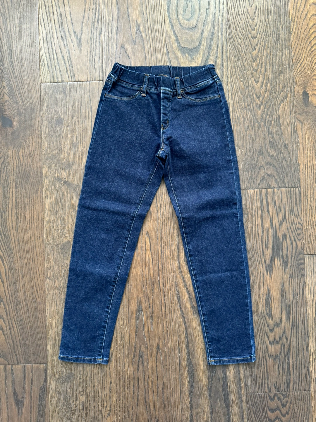 Uniqlo Kids Dark wash blue jeans with a pull-on waistband.