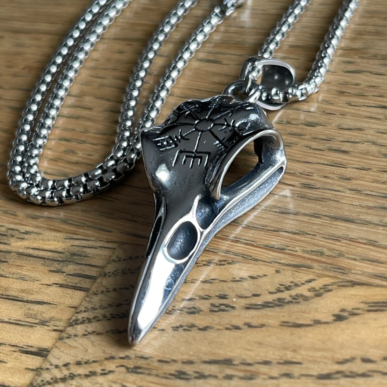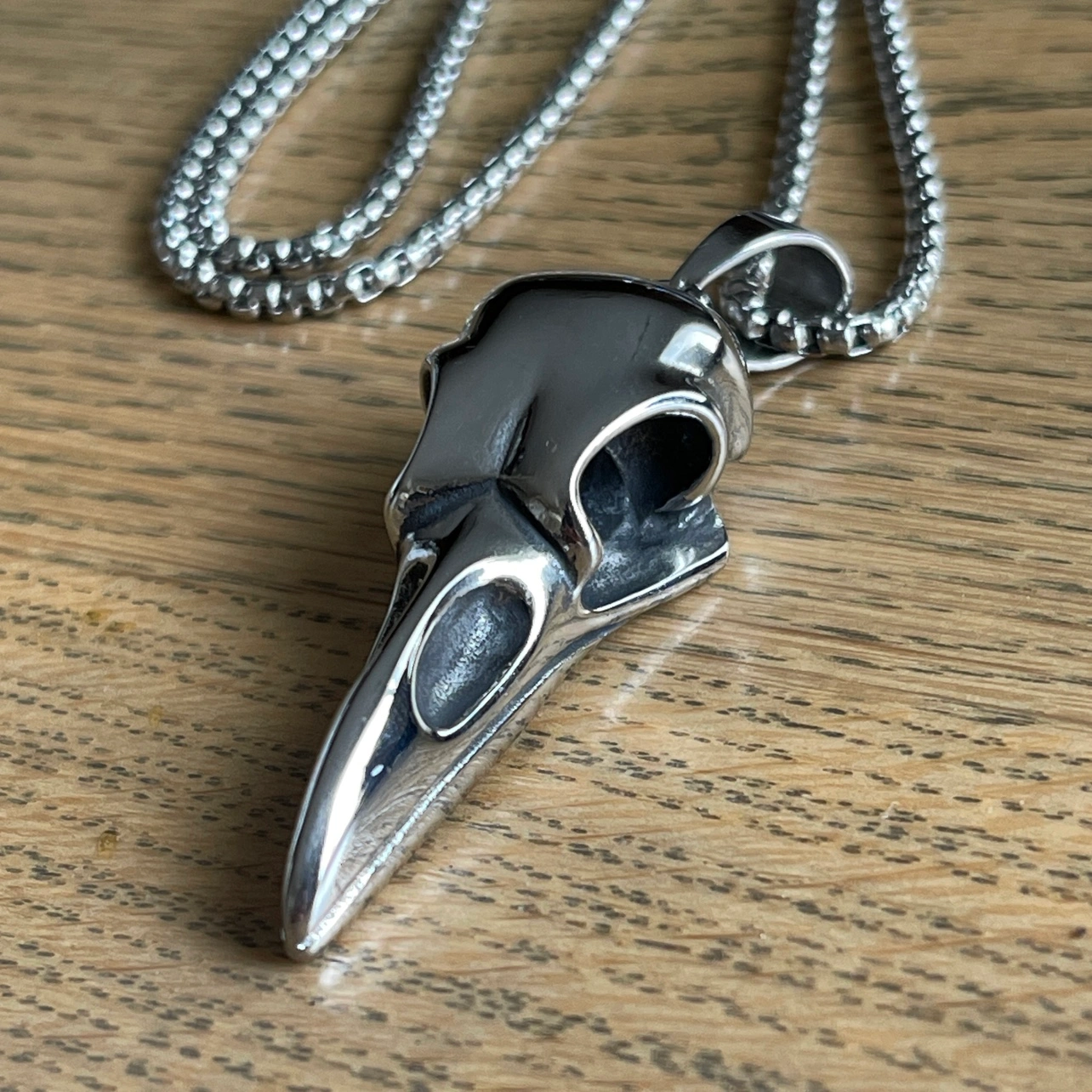 Raven Skull Necklace in Stainless Steel