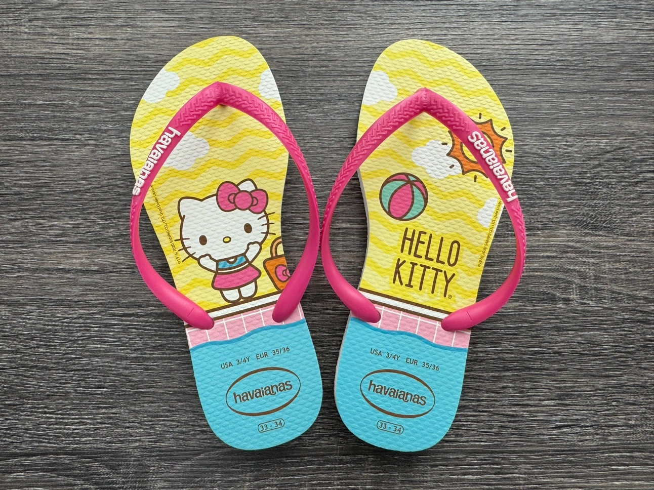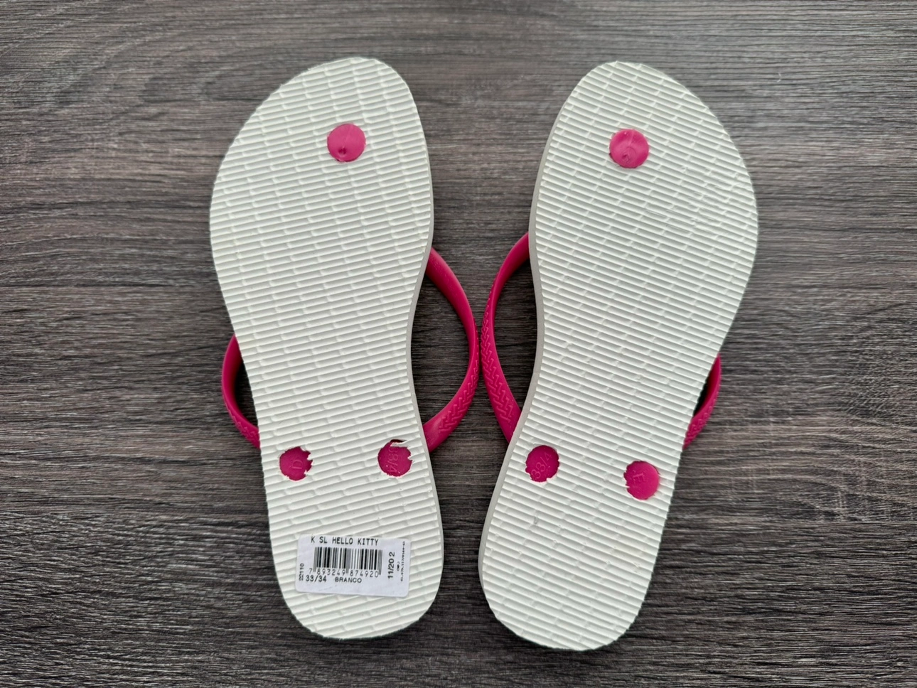 140Pick up at 16th Ave & Kennedy NE, Markham Havaianas Kids Hello Kitty Flip Flops Size 31-34. Pink, yellow and white Hello Kitty themed flip flops. ***Accept cash only