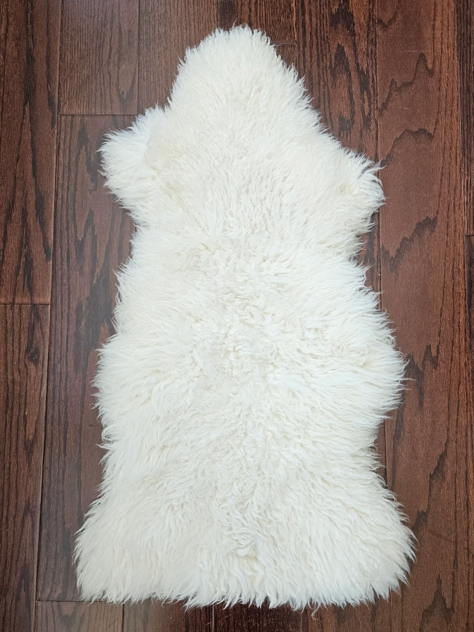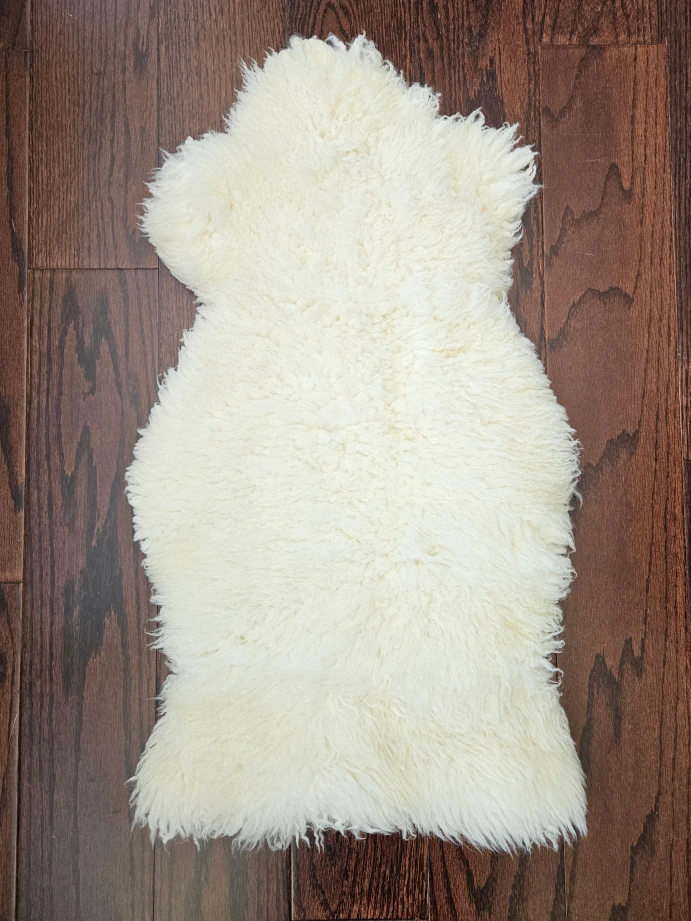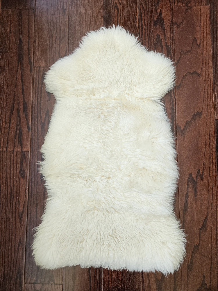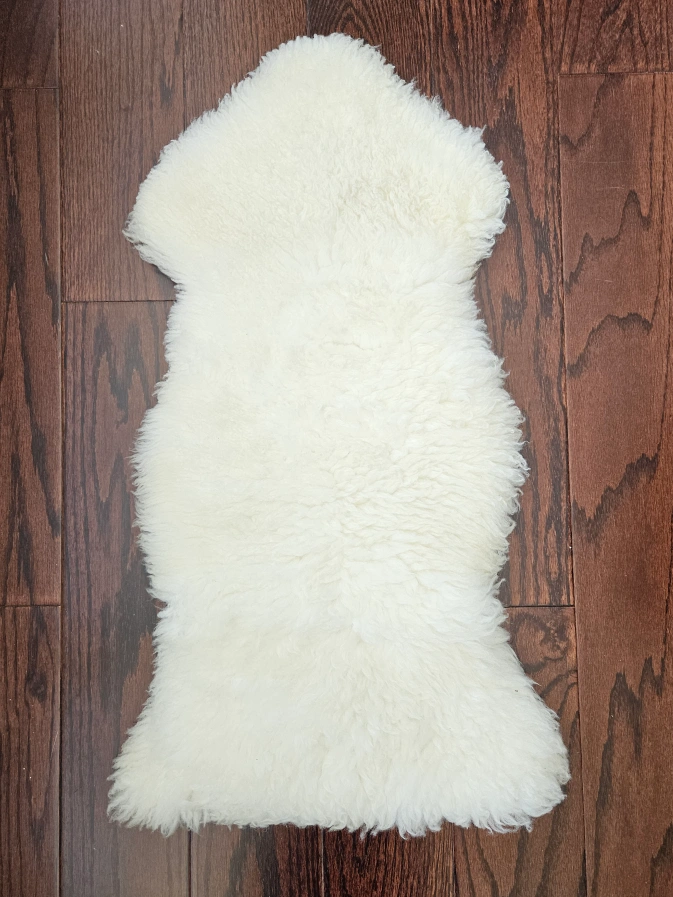 Product: Sheepskin that can be used as a throw, cover, or rug. This product was only previously used as a dining chair throw (it was never used as a rug!) Purchased from Ikea. Retail price- $49.