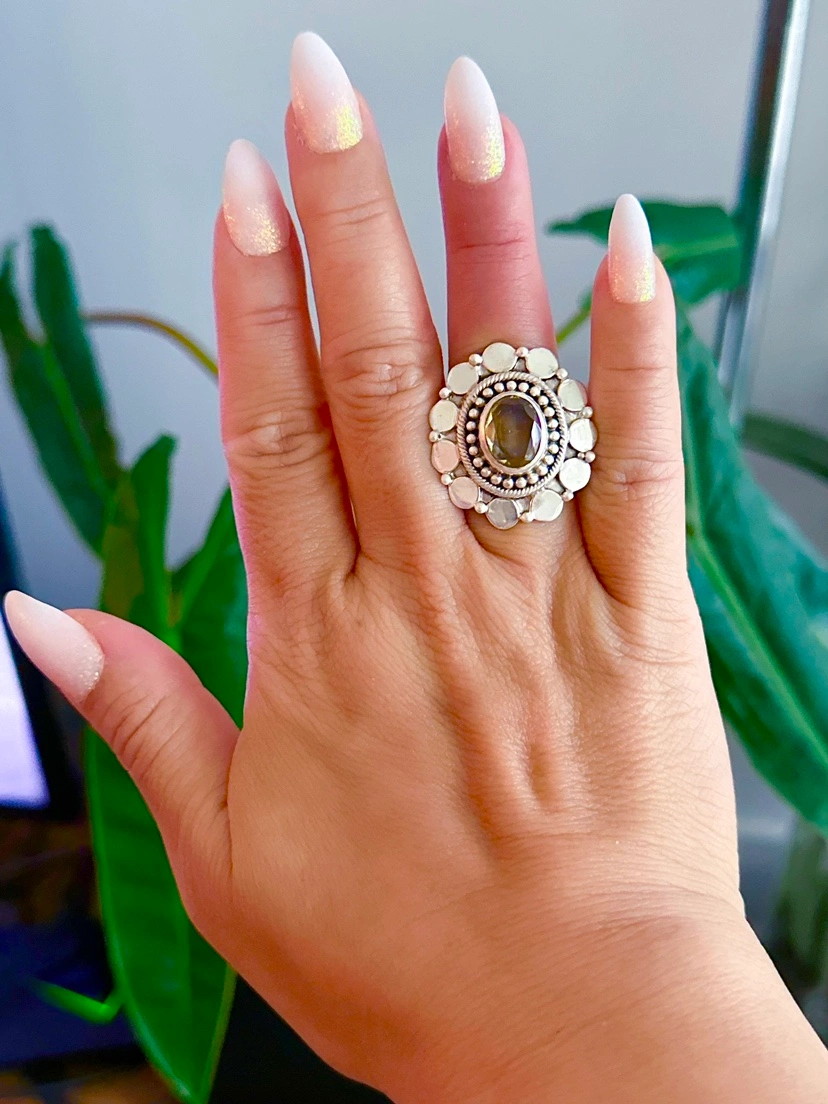 Smoky Quartz Sterling silver cocktail ring