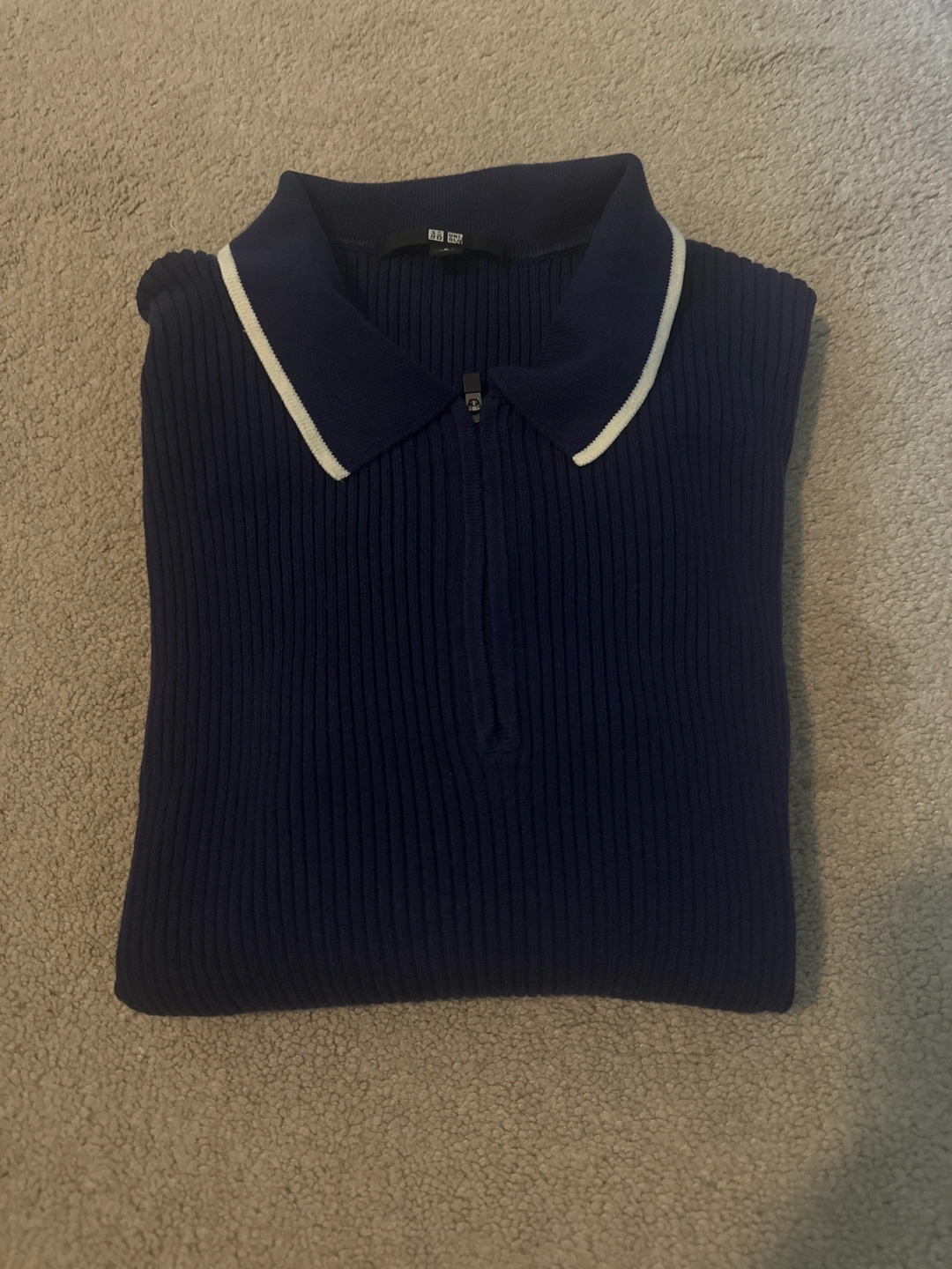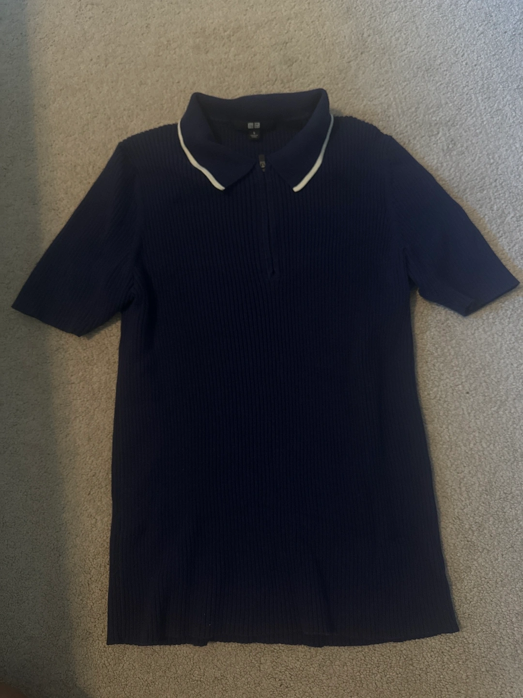 475Navy blue with white collar and zipper. Short sleeve. Great for office or school. Discount on Bundles.
