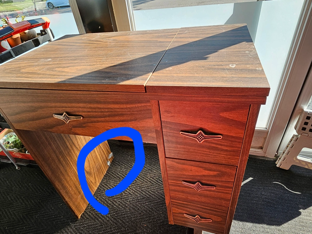 Vintage Sears Kenmore sewing machine with folding table. The table has hinges that fold down so the machine is easily stored. The sewing machine includes a foot pedal. This vintage sewing machine is working properly and it's been in the storage room for very long time. It needs to run first in several times in order to get the smoothness and better run. The cabinet has a cheaped on the left side as it shown in the couple of pictures at the end.