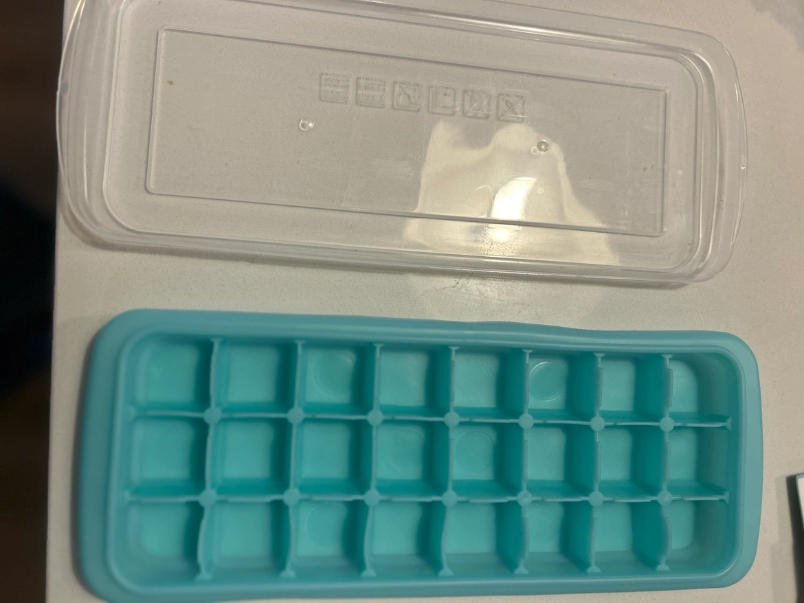 Blue silicone ice cube tray with a clear plastic lid. Holds 16 cubes. The lid has a seal to help keep the cubes fresh. Perfect for making ice cubes for your drinks.