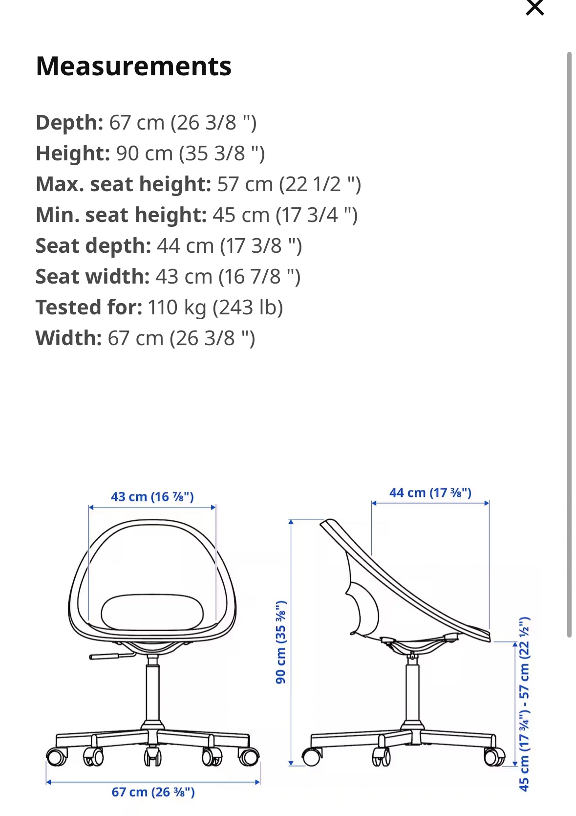 white swivel desk chair from ikea. Retails $84. Like new. Full dimensions in the last picture. Pick up only