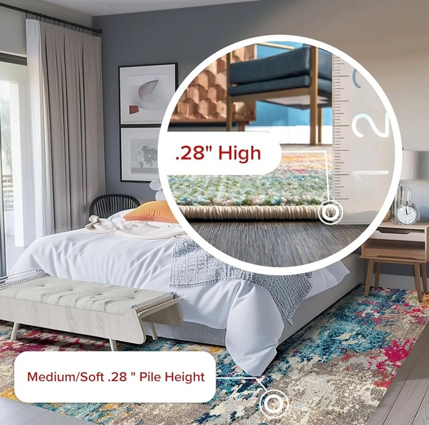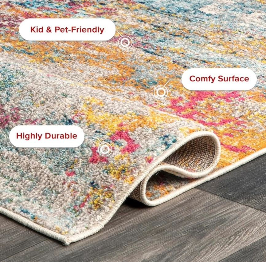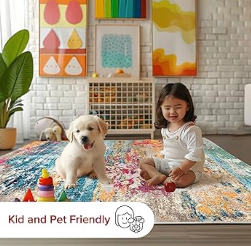 Kid and Pet-Friendly Rug: Worried about spills or messes? With this synthetic fiber design, this area rug is engineered to withstand the demands of a busy household from kids to pets, giving you peace of mind letting you relax and enjoy your new rug.
