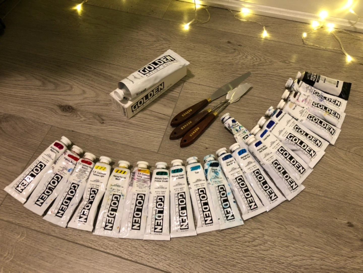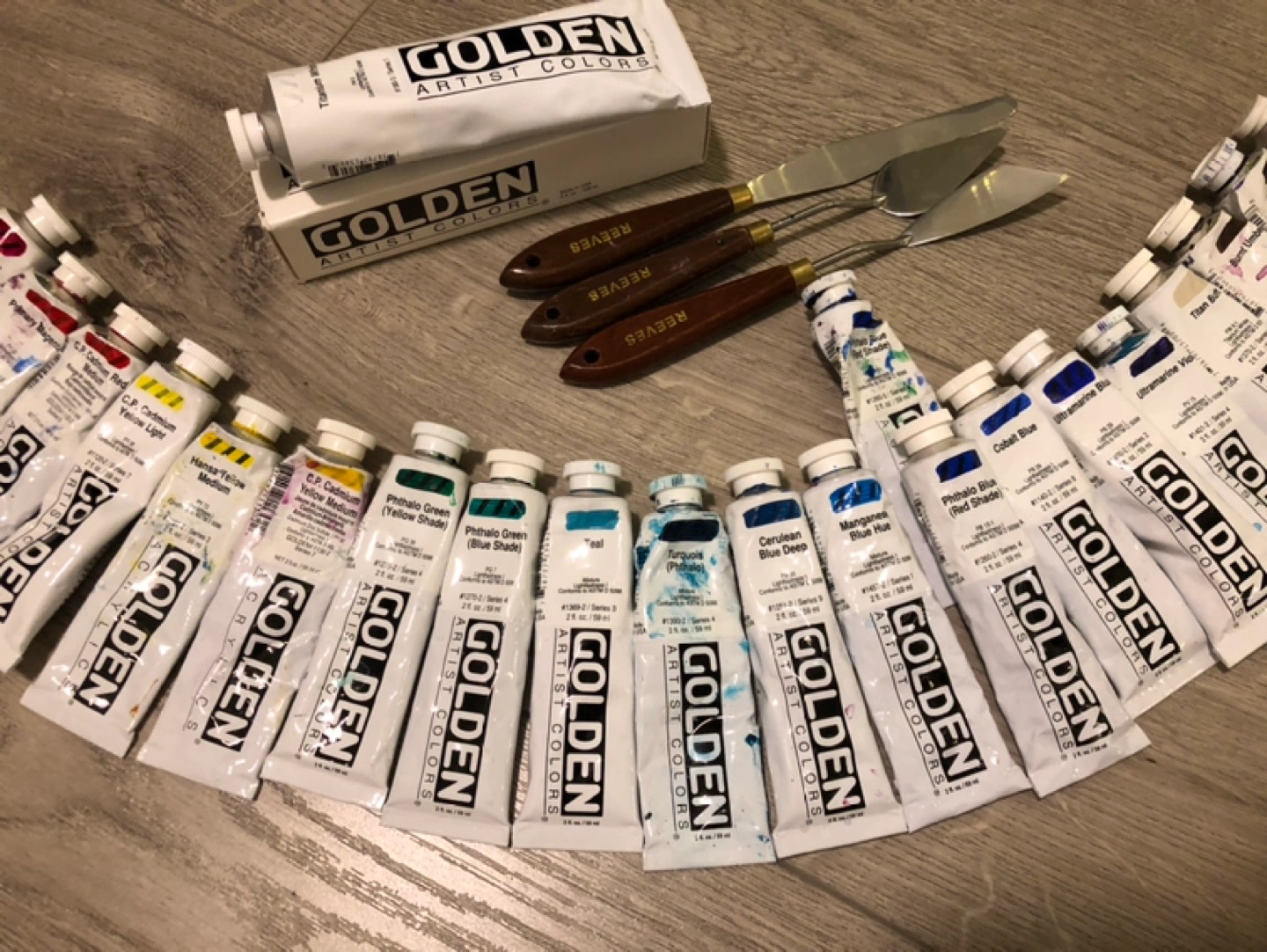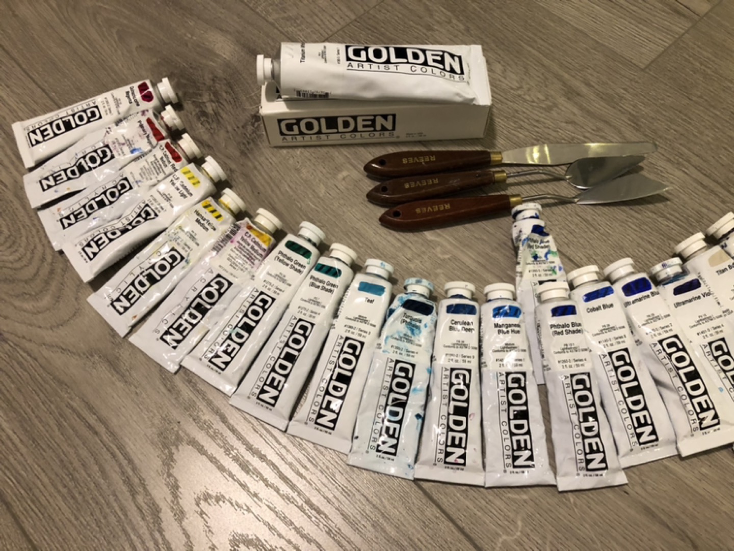 Extensive Set of Golden Acrylic Paints + Palette Knives