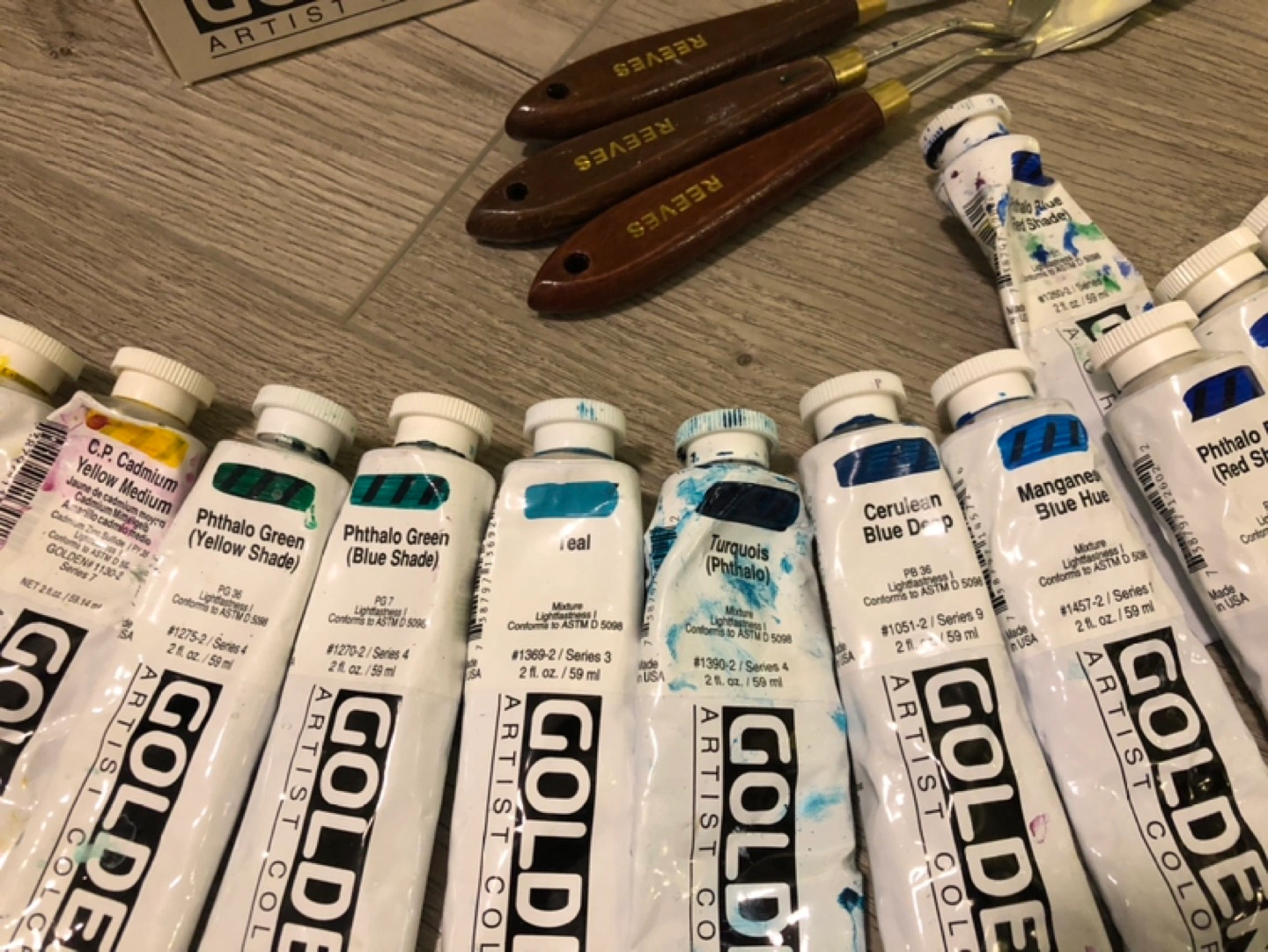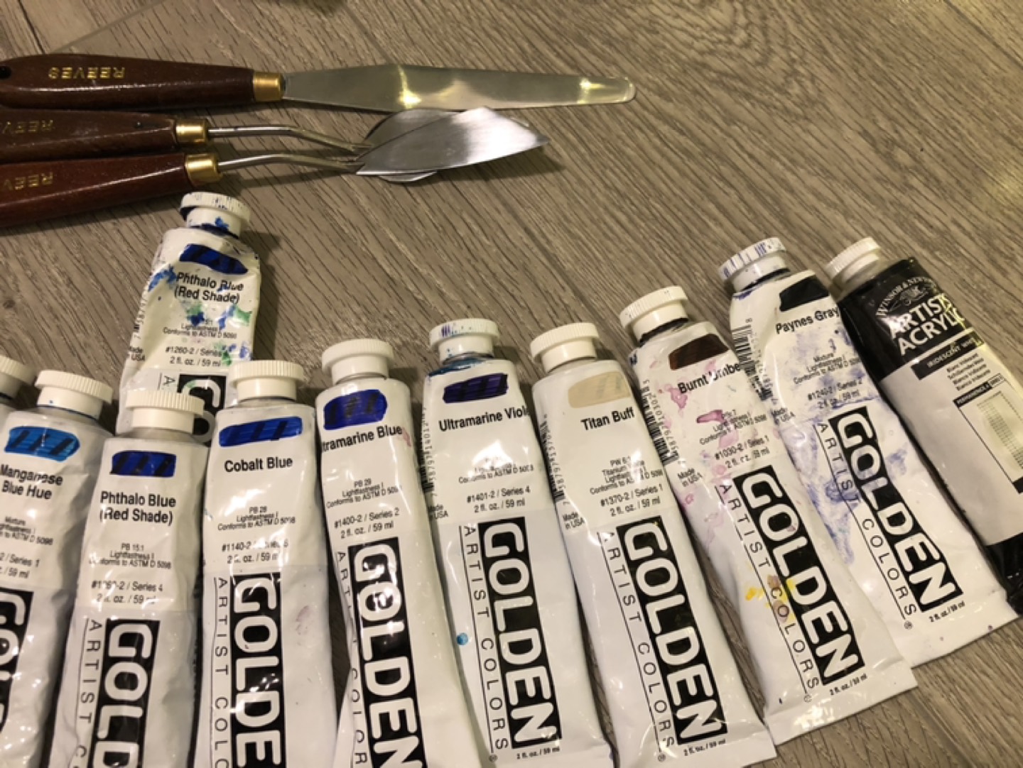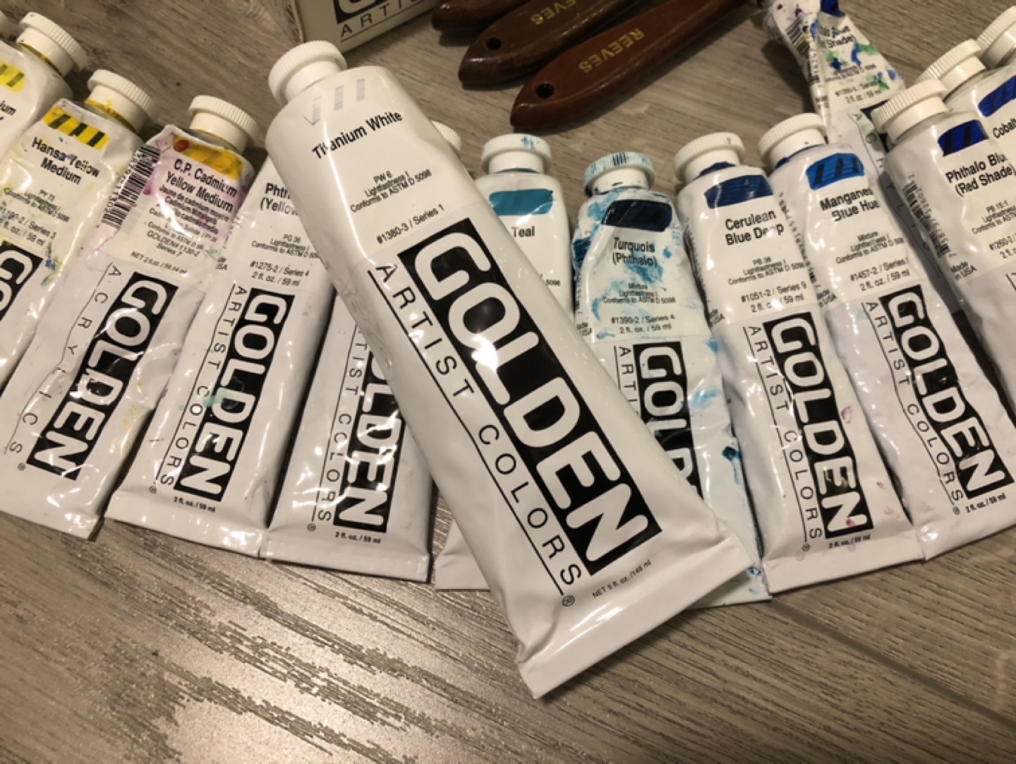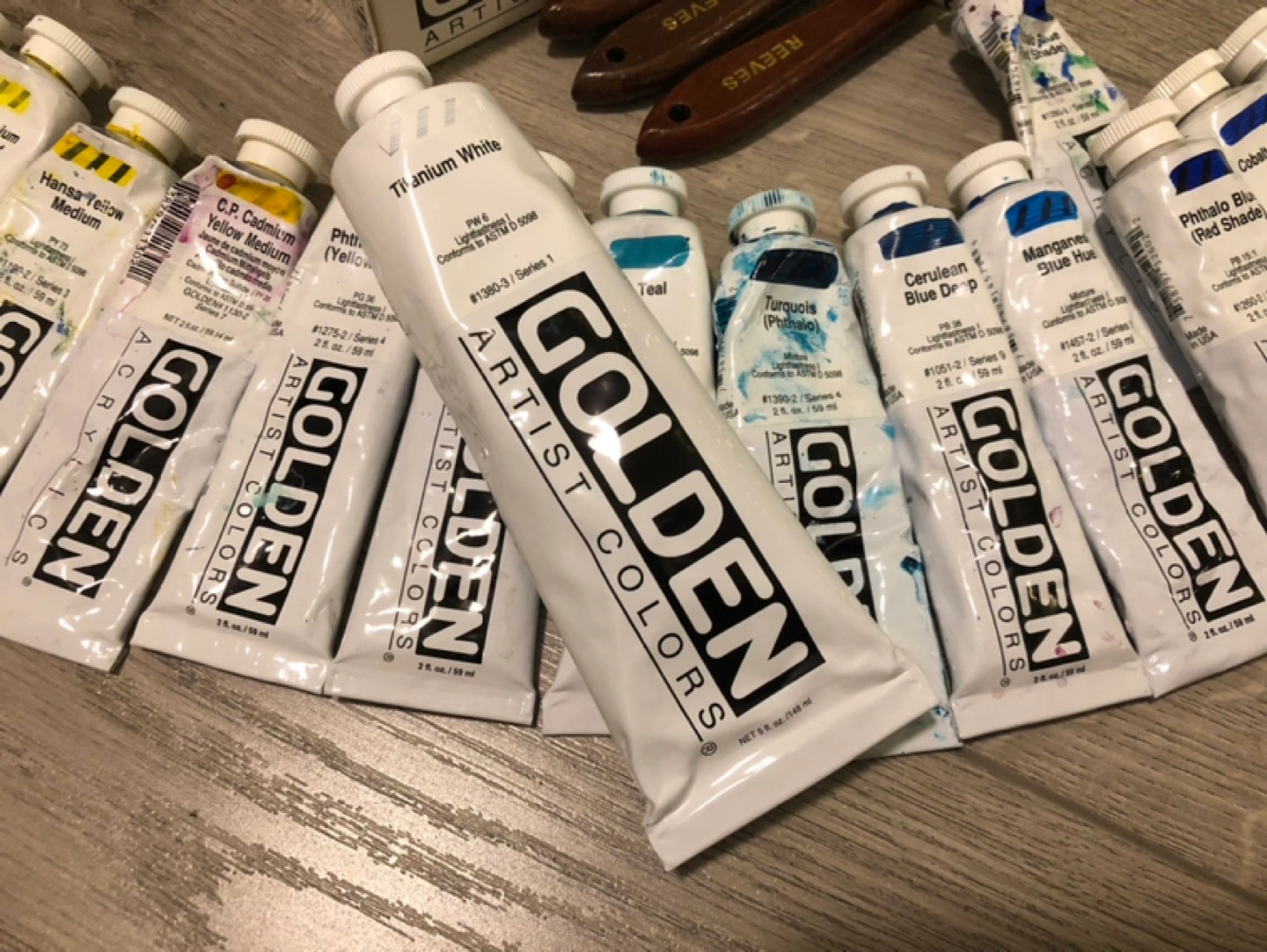 Extensive Set of Golden Acrylic Paints + Palette Knives