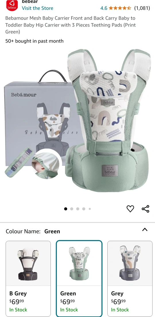 Bebamour Mesh Baby Carrier Front and Back Carry Baby to Toddler Baby Hip Carrier with 3 Pieces Teething Pads (Print Green) In excellent condition. Barely used. Pick up - Wellesley and Parliament