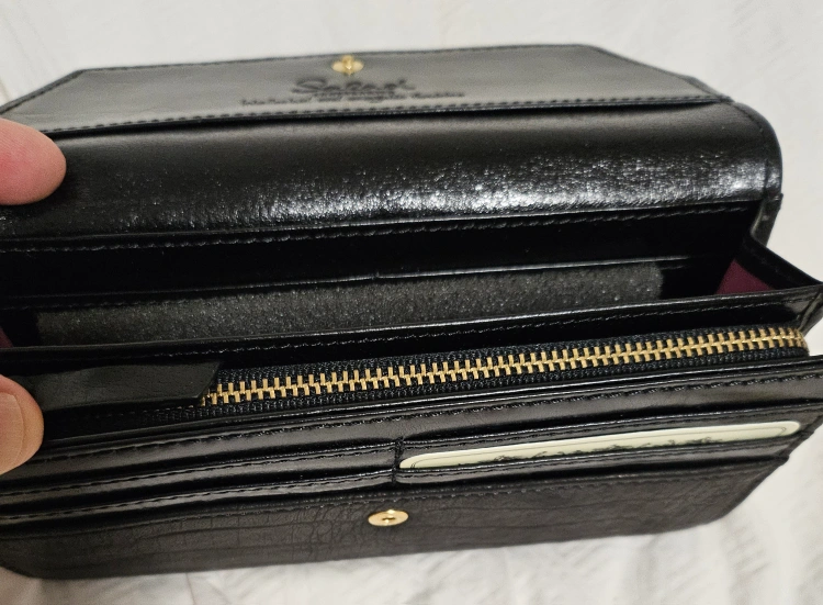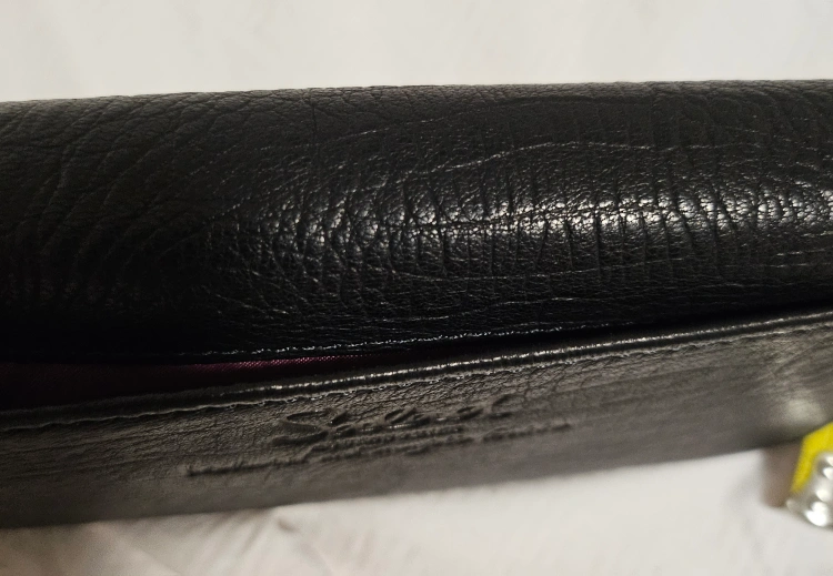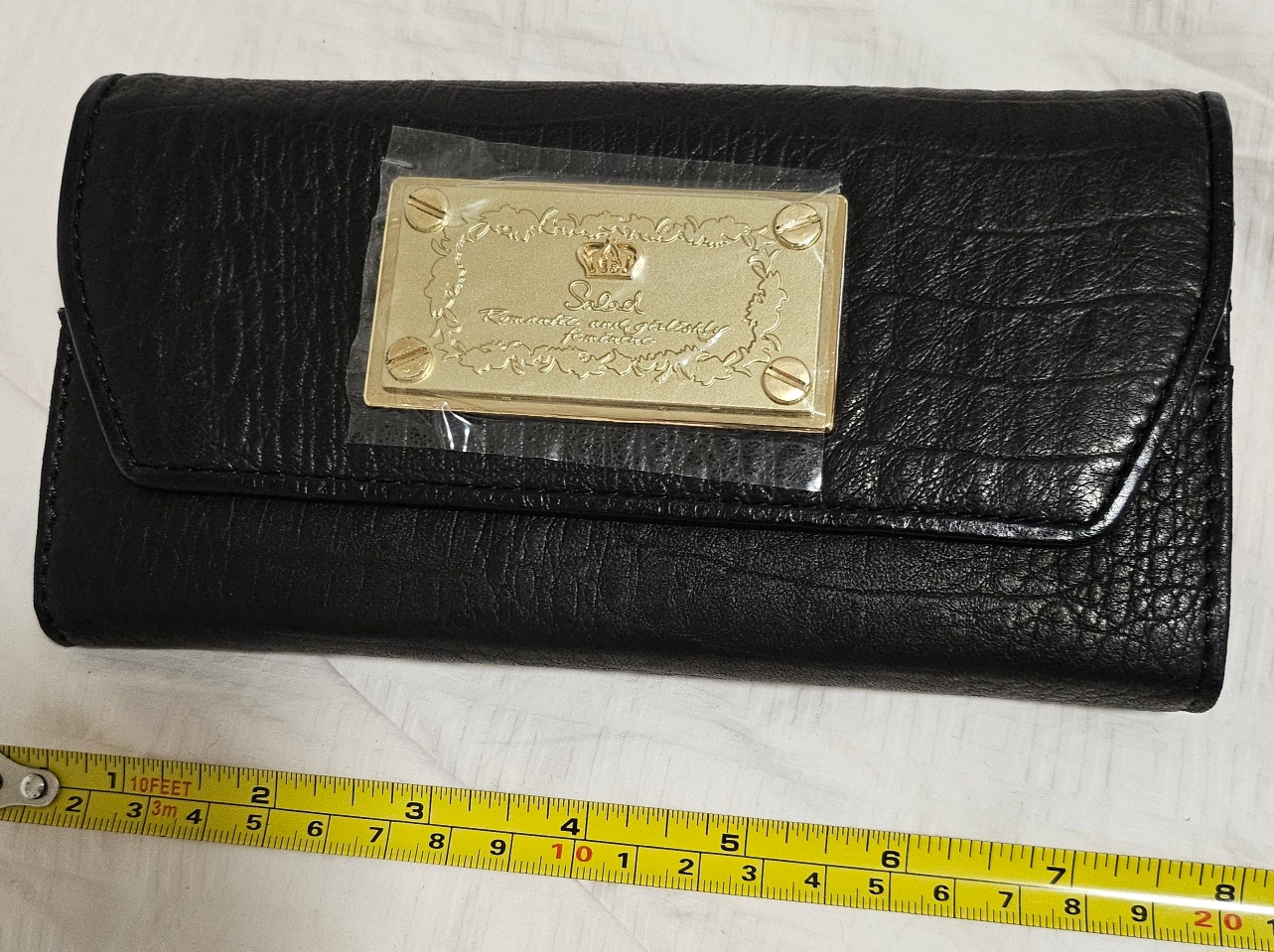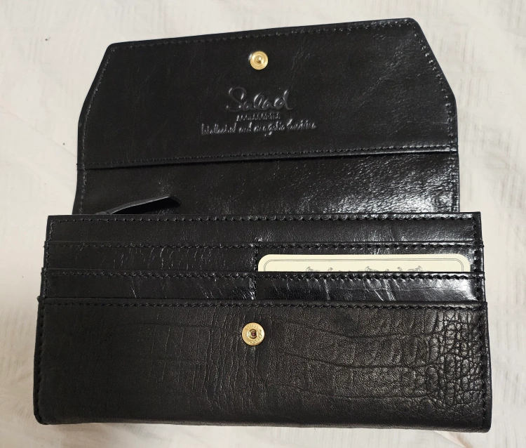SALAD genuine leather wallet. Black leather wallet with gold accents.