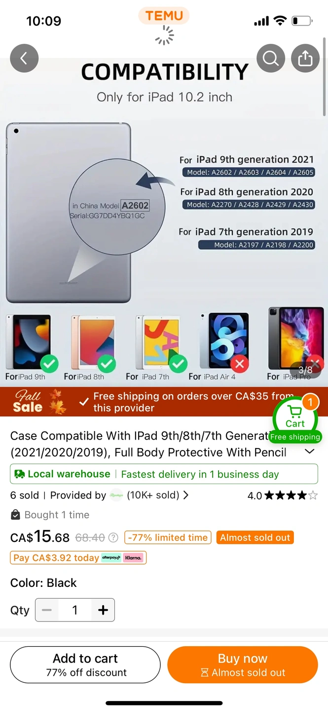 Black case for iPad 10.2 inch.