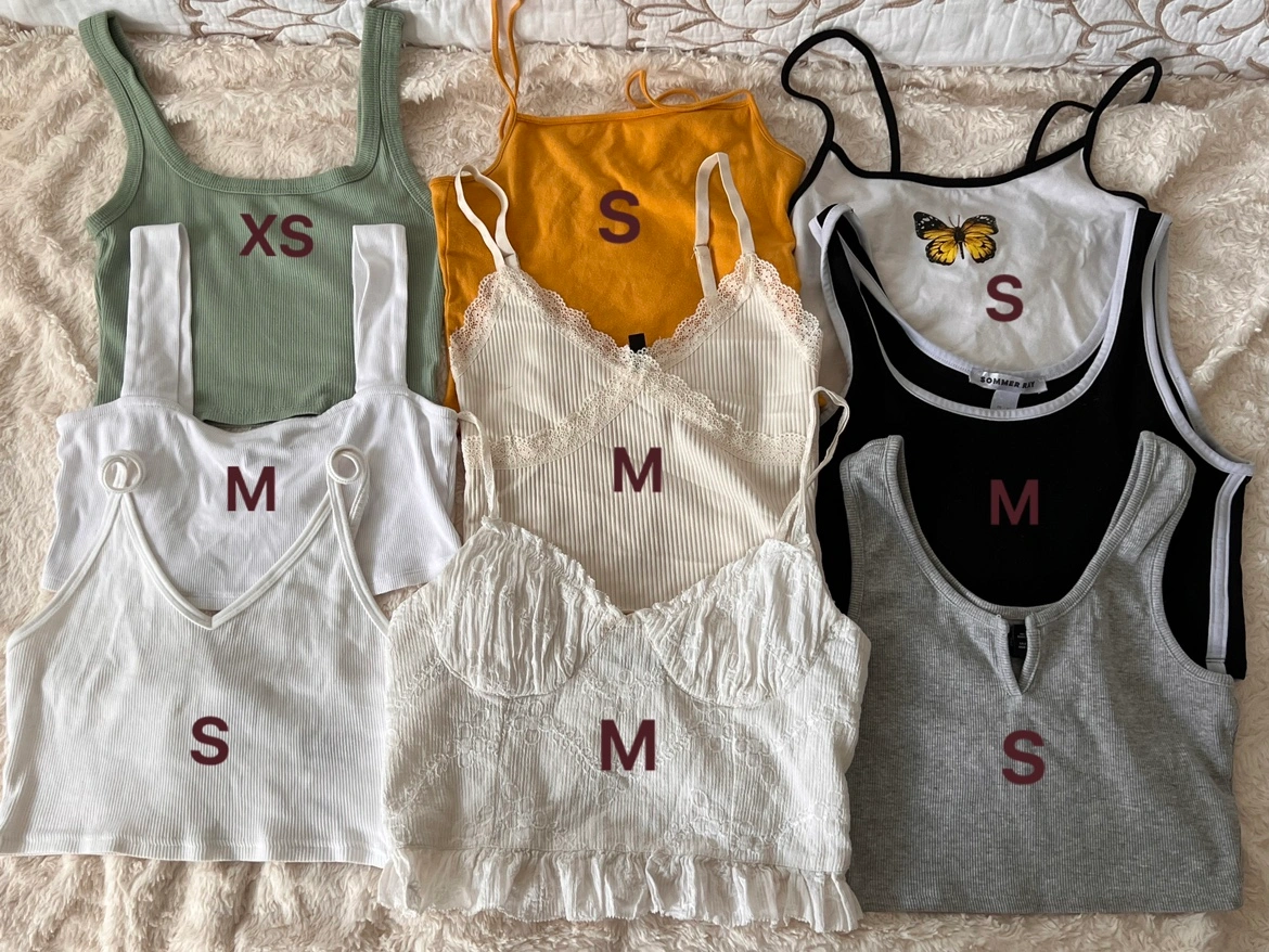 A bundle of 8 tank tops in a variety of colours and styles. All in good condition.