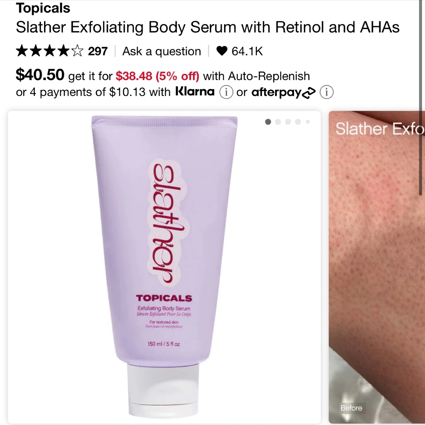 Topicals Slather Exfoliating Retinol AHA Body Serum Lotion
