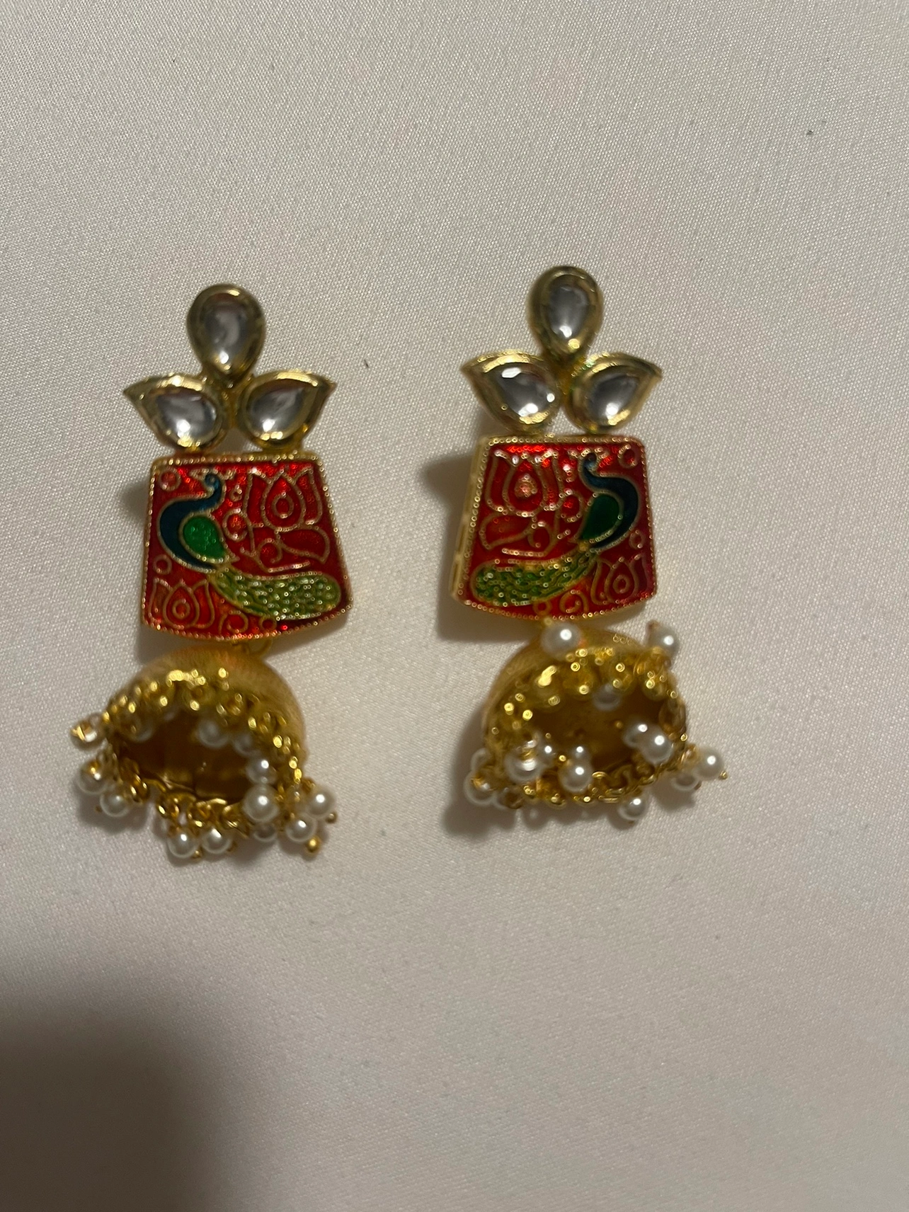 Buy & SellPeacock Jhumka EarringsPeacock Jhumka Earrings$5These are beautiful and colourful earrings with a peacock design. They are gold tone and have pearl accents.WHERE TO MEETHView MapSELLERShikhaHeadon Forest211 review0 chats·0 favorites·3 views