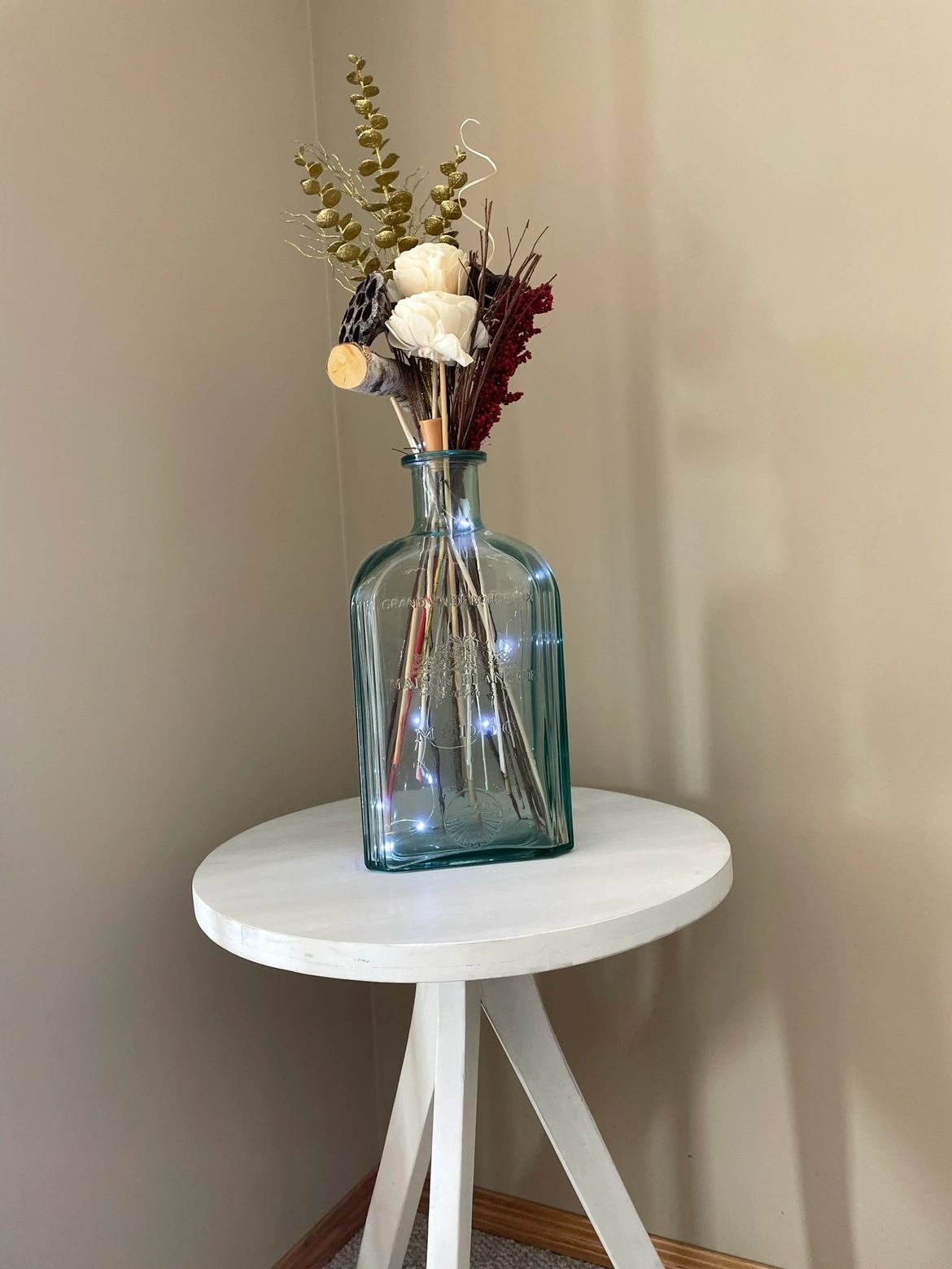 Whitewashed Wood Nightstand with Carved Detail