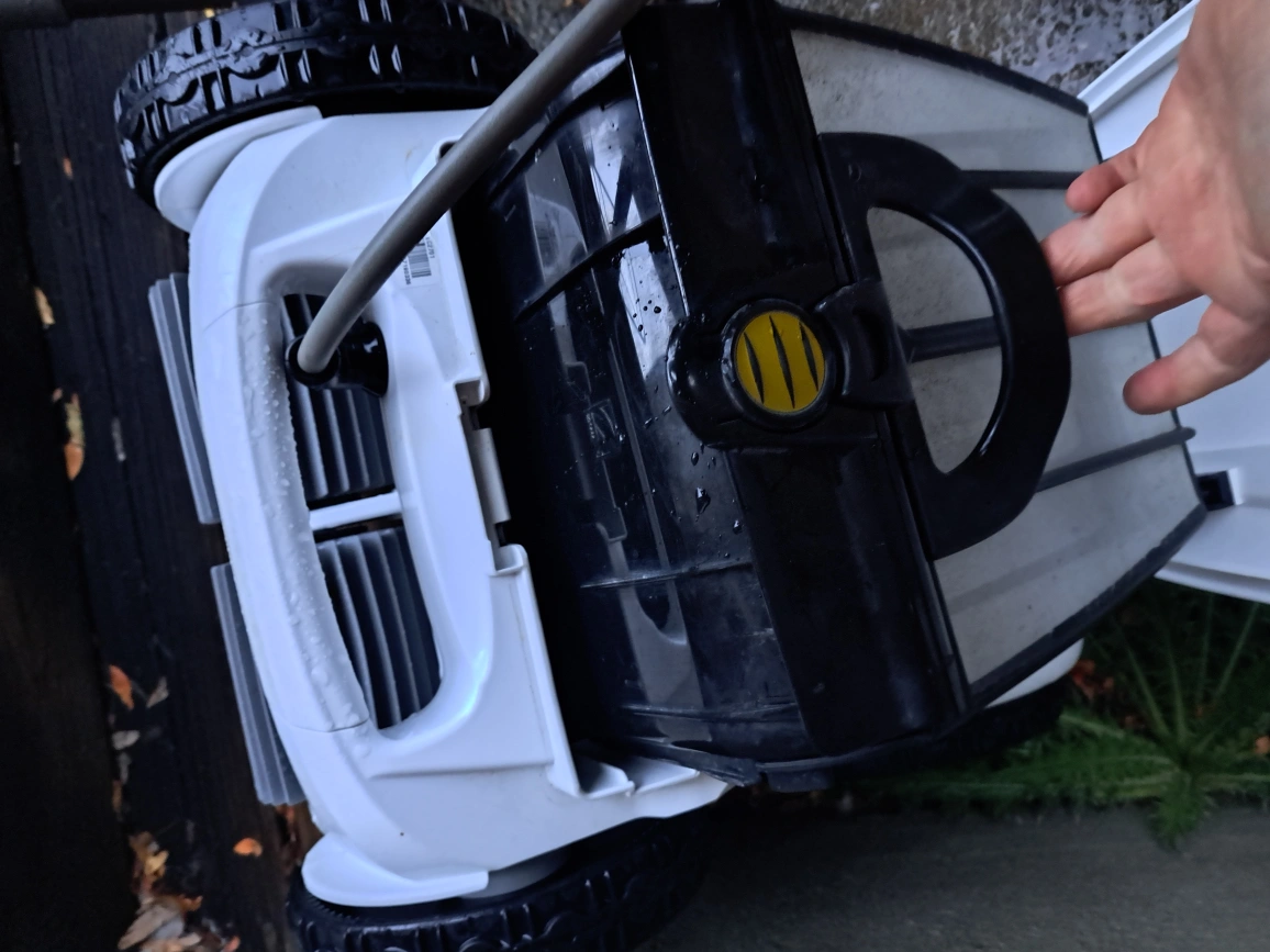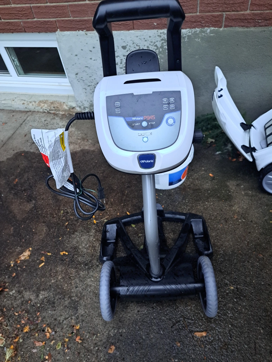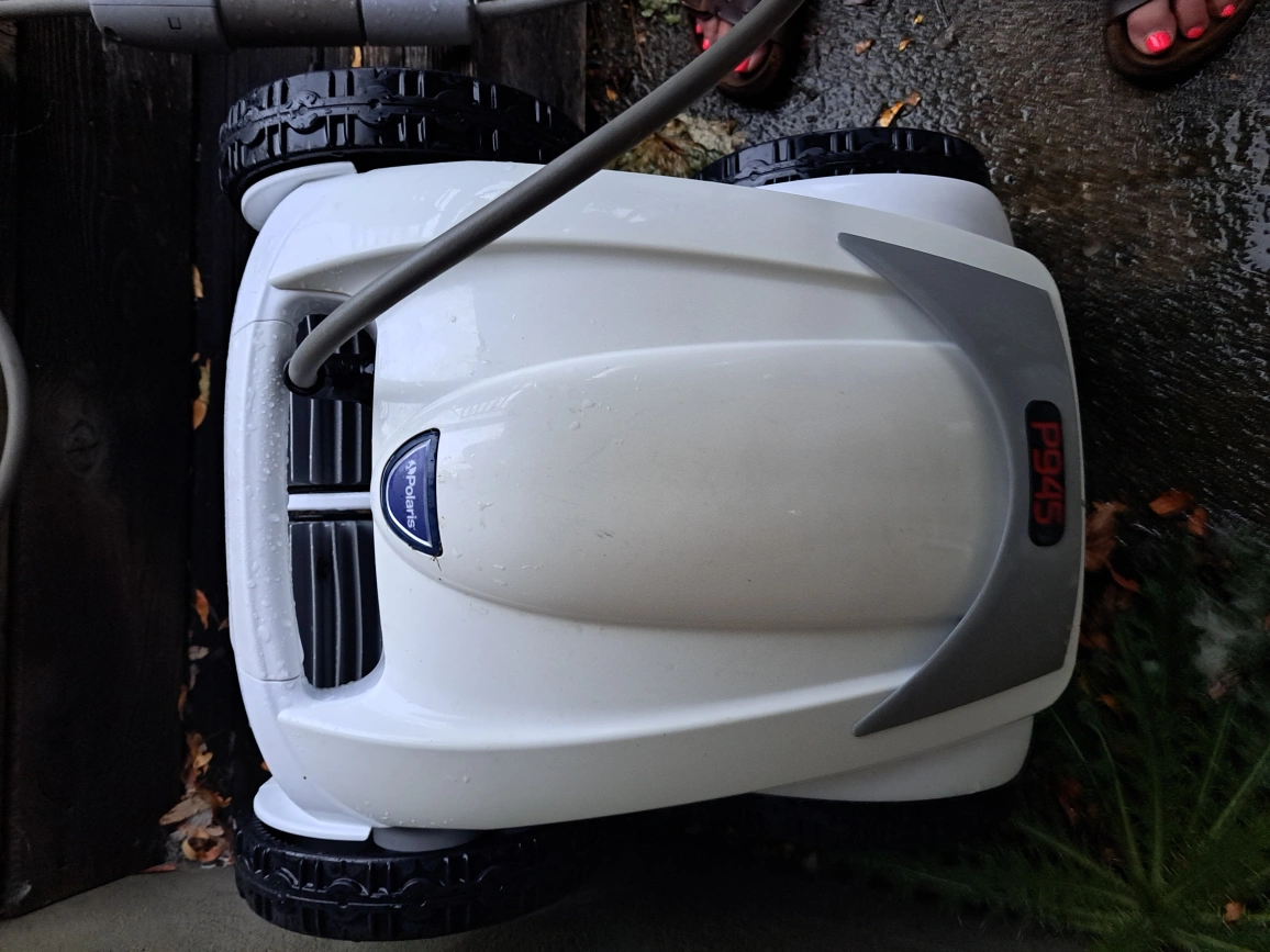 Polaris P945 automatic pool vacuum. Plug it in, drop into pool, set timer and start. Has easy lift when all done, push button and it crawls to waterline so you can lift out.