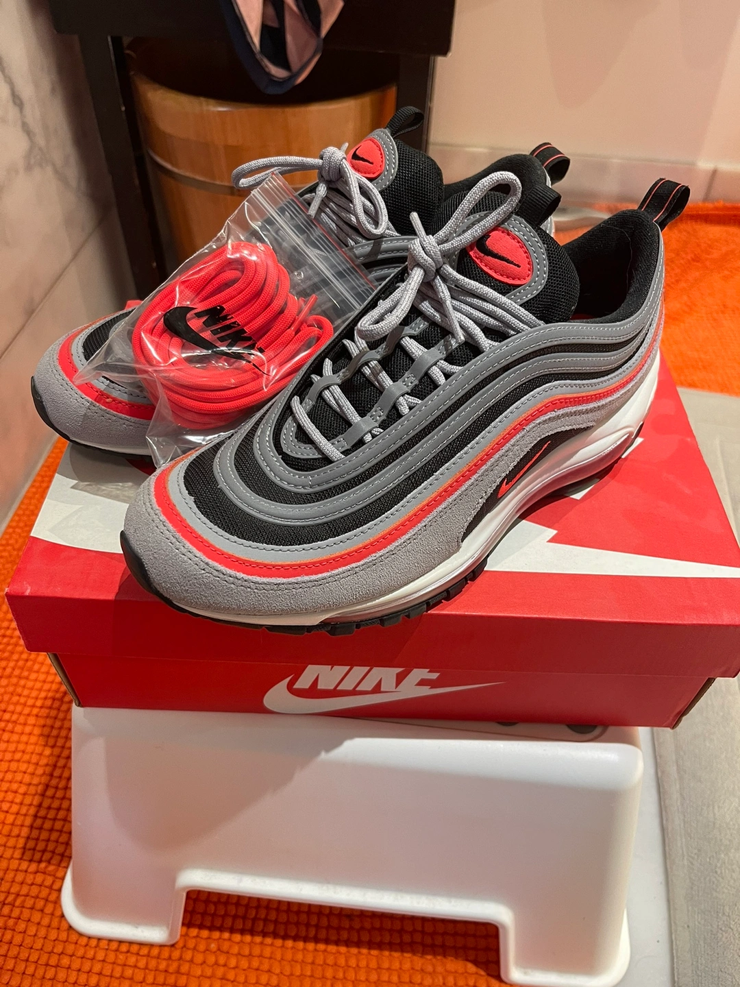 New Nike Air Max 97 Wolf Grey / Radiant Red-Orange.