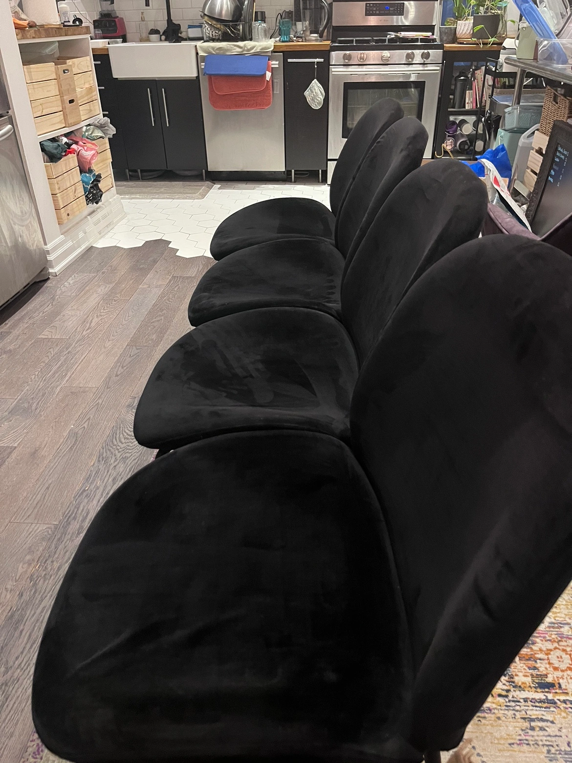 Buy & SellBlack Velvet Dining ChairsBlack Velvet Dining Chairs$150Set of four black velvet dining chairs with black metal legs.ConditionLike newWHERE TO MEETKensingtonView MapSELLERverifiedYawehKensington1103 reviews2 chats·0 favorites·40 viewsSEND CHAT TO SELLERHi Yaweh! I’m interested in your listing.Hi Yaweh! I’m interested in your listing.Get the Karrot app to chatSign In to chat