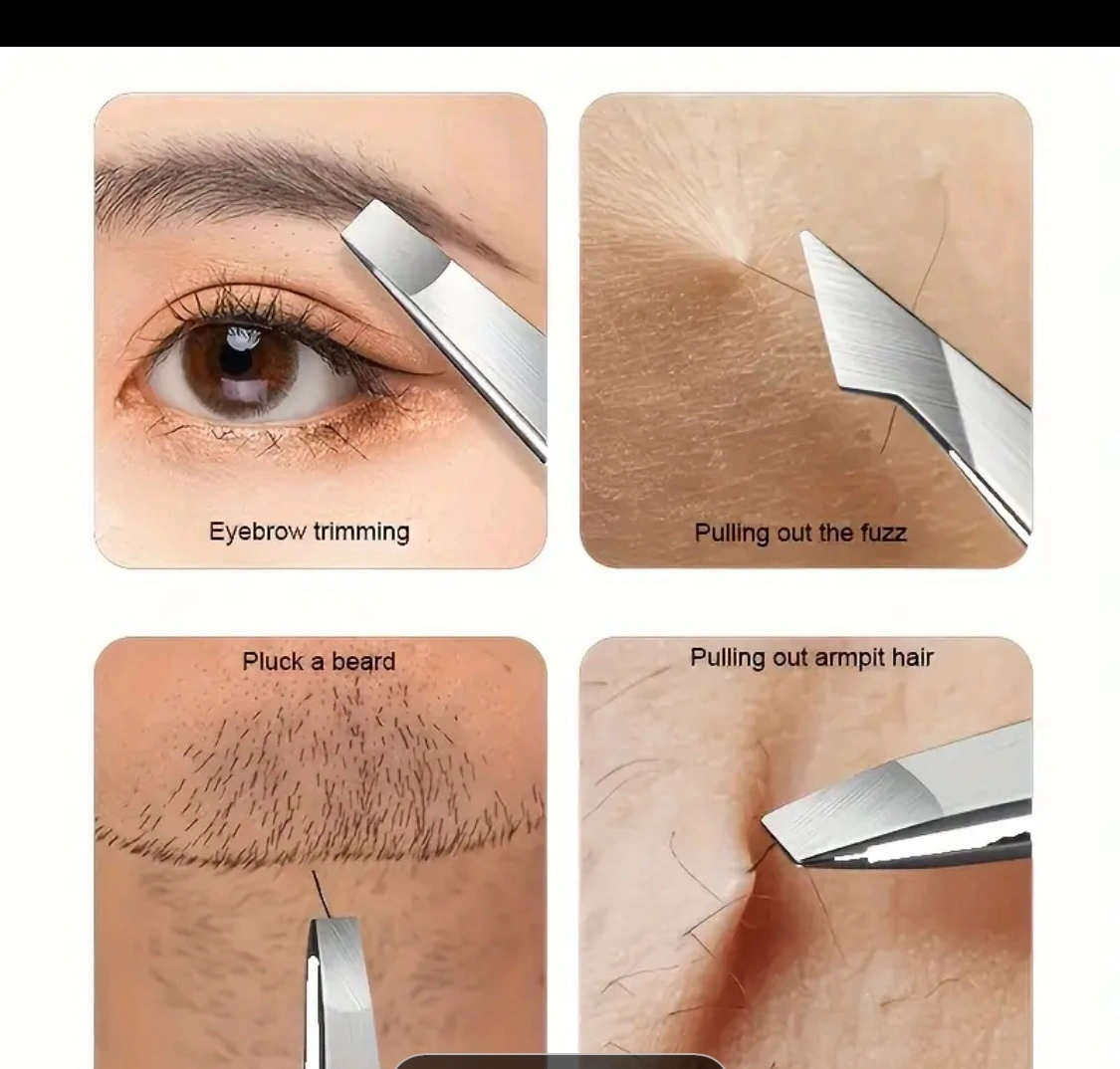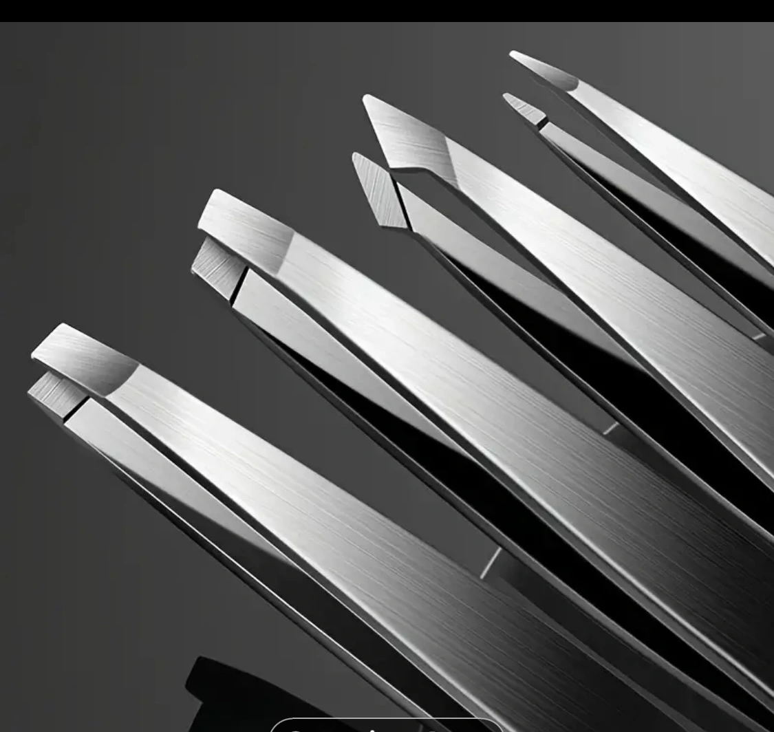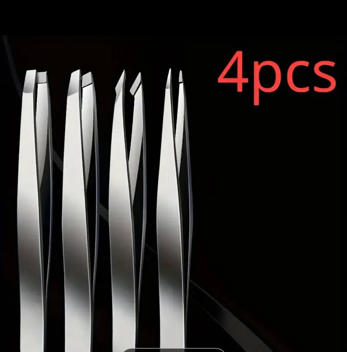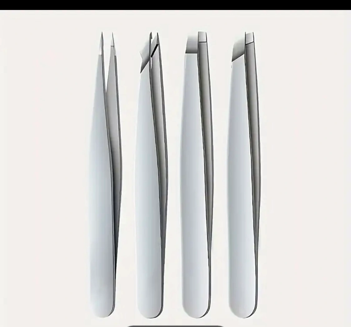 A set of 4 tweezers in different shapes and sizes. Available in Scarborough
