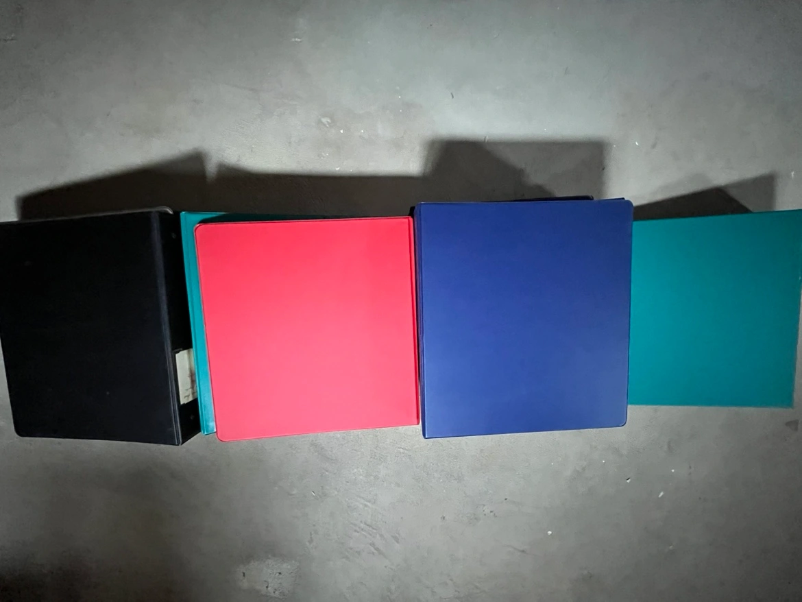 A total of 10 ACCO 3-ring binders in black, red, blue, and green colour. The package includes one 3” binder, two 2” binders, six 1-1/2” binders and one 1” binder. All for $7.