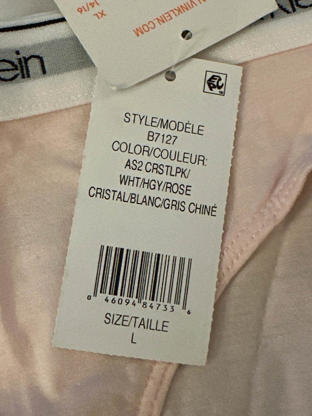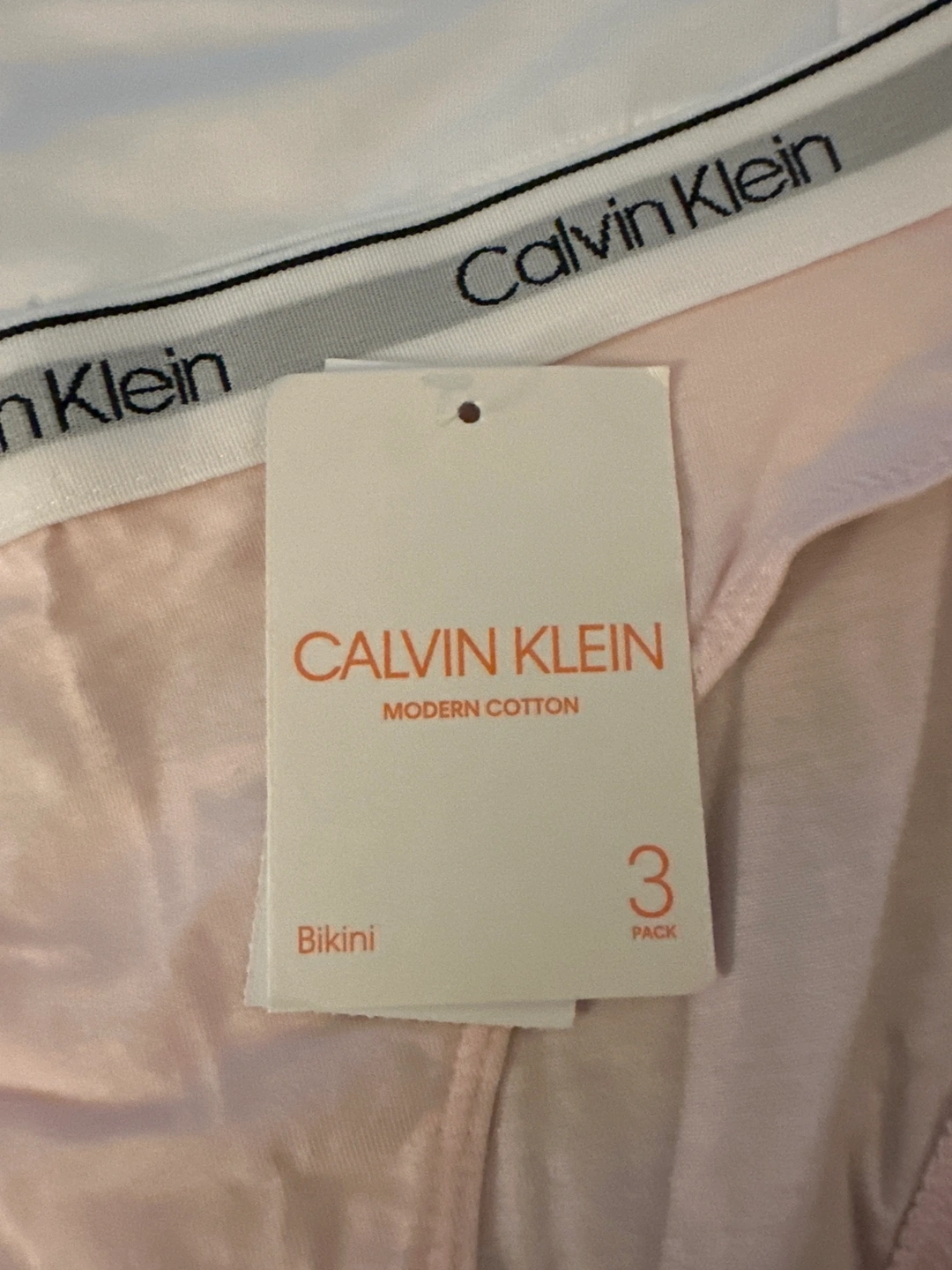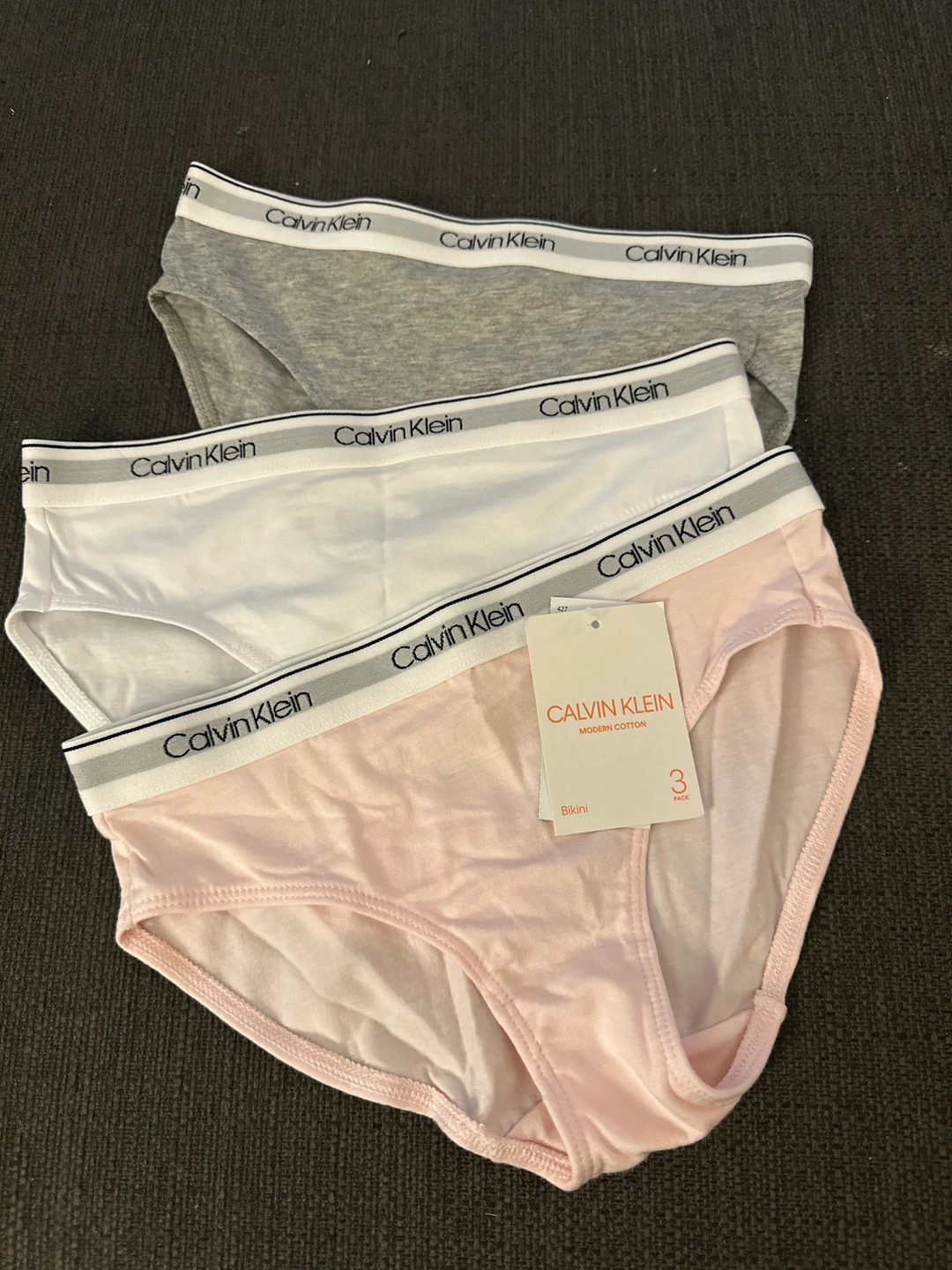 2833 Pack of Calvin Klein underwear in grey, white, and pink. Size Large.