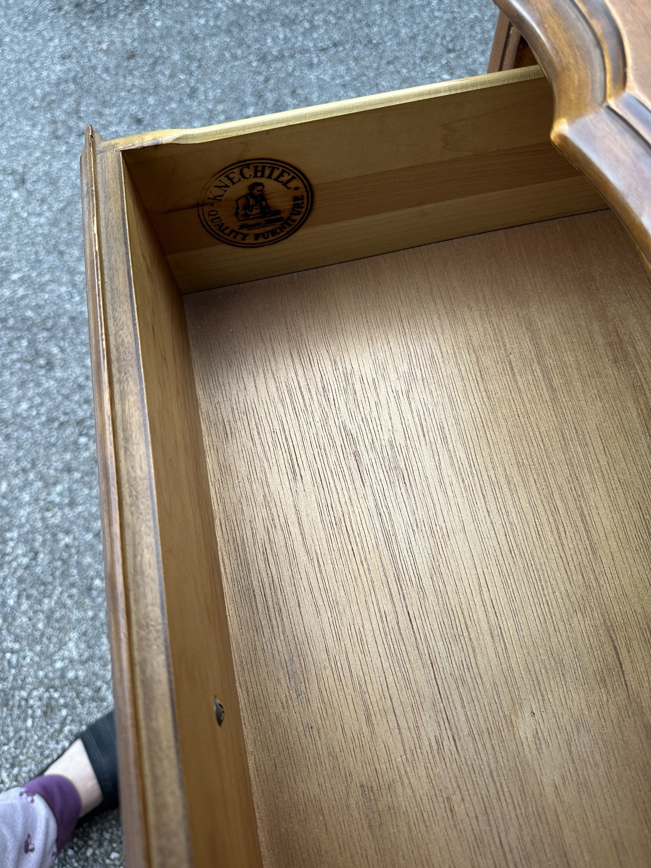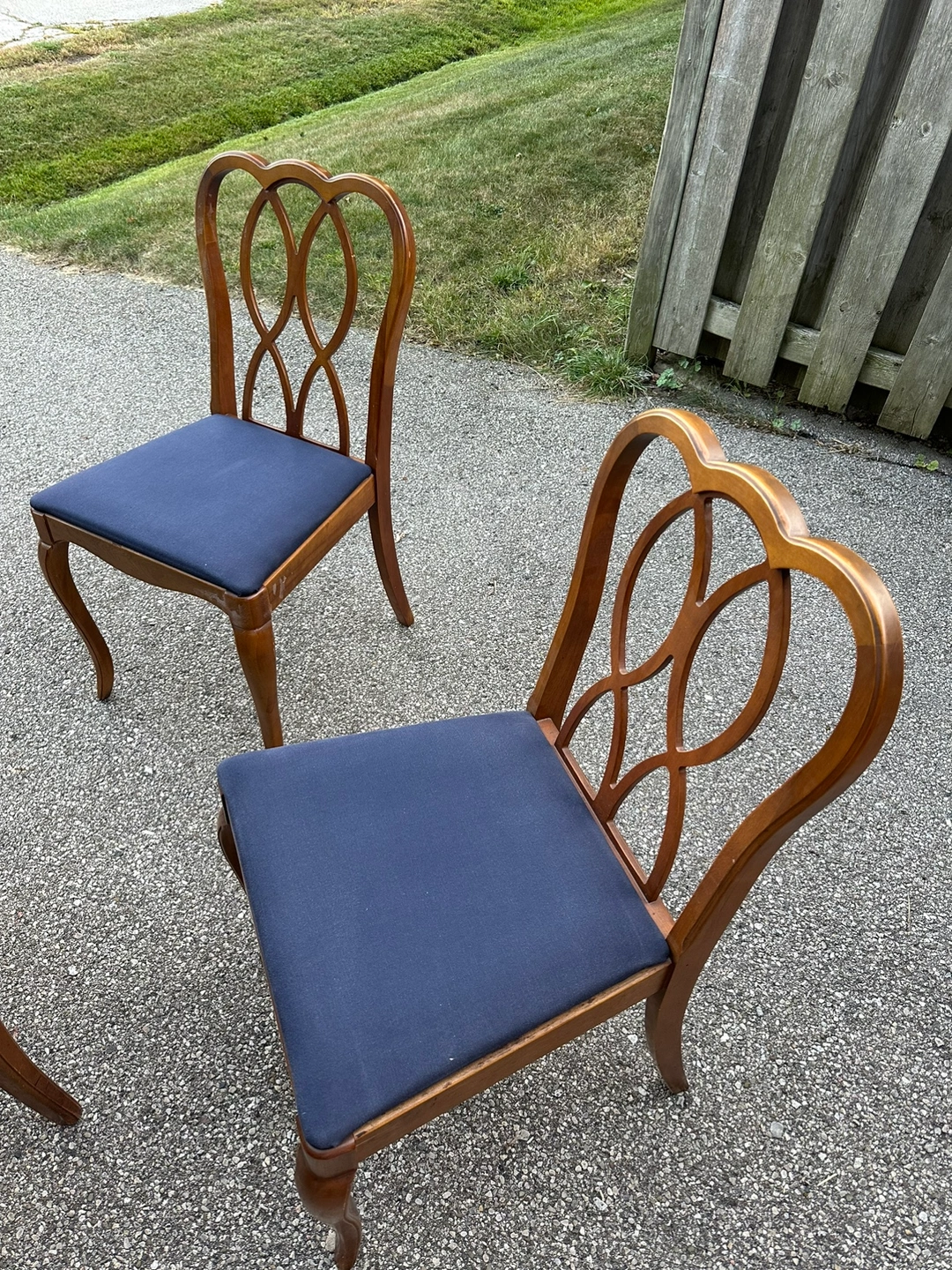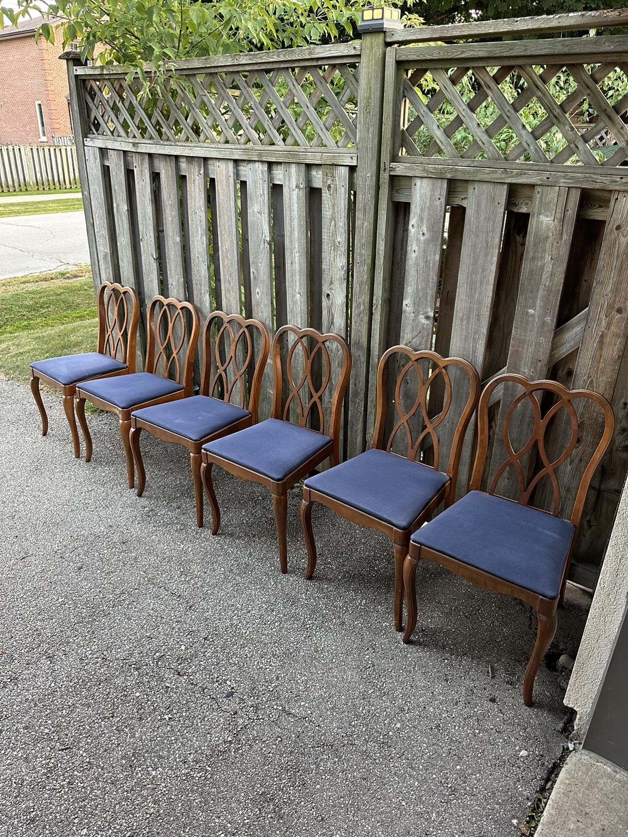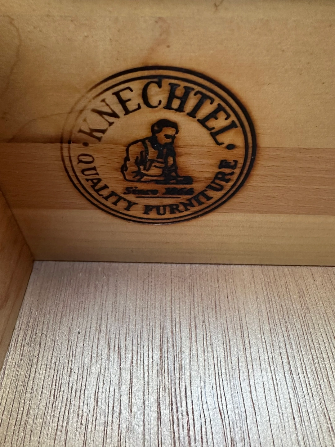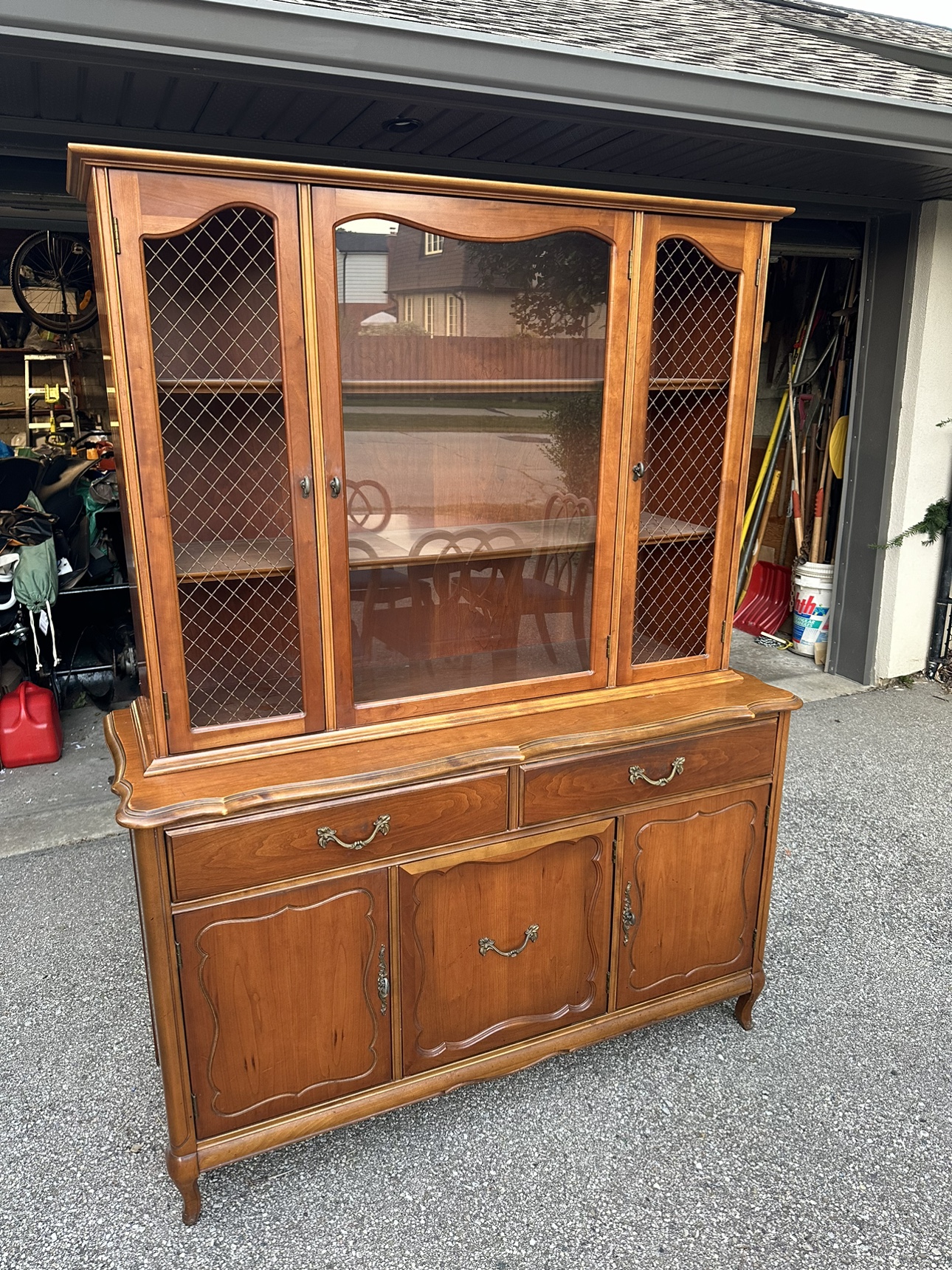 Solid wood antique dining room set. Made by Knechtel, a Canadian based furniture company. Comes with 6 chairs, table extends. The hutch in the background is also included in this listing. It’s in very good condition.