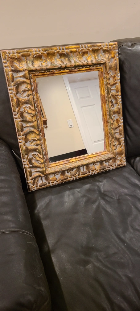 455A beautiful, ornate mirror with a gold frame.19"×22"