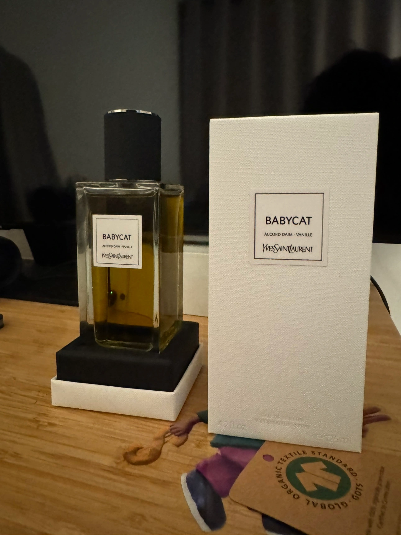 A bottle of Yves Saint Laurent Babycat perfume. It is in the original box and is missing 5 sprays only. If you are interesed please leave a mesaage