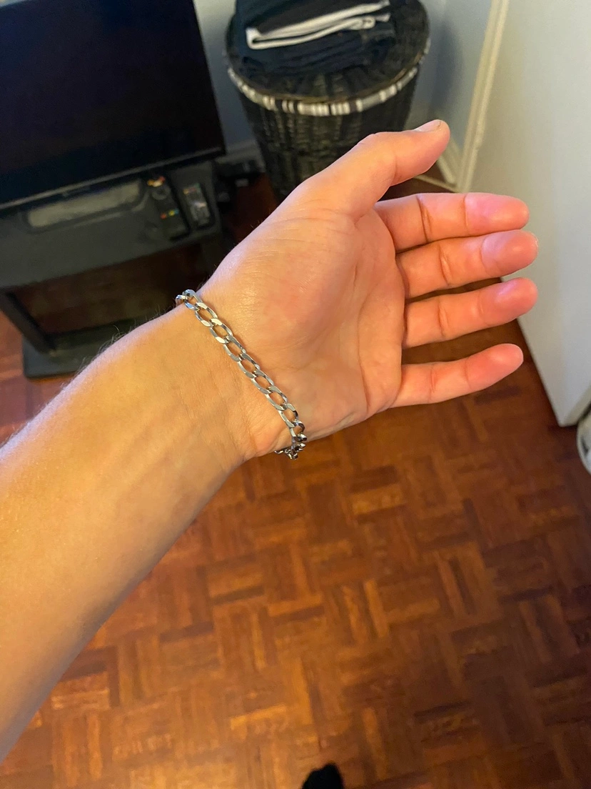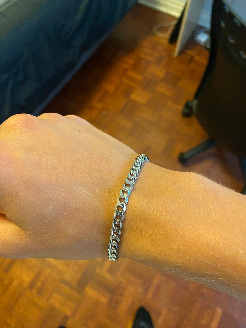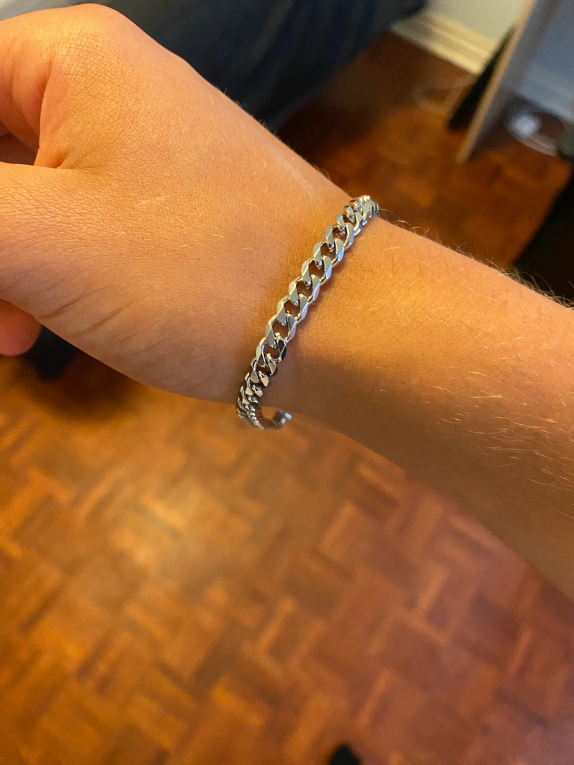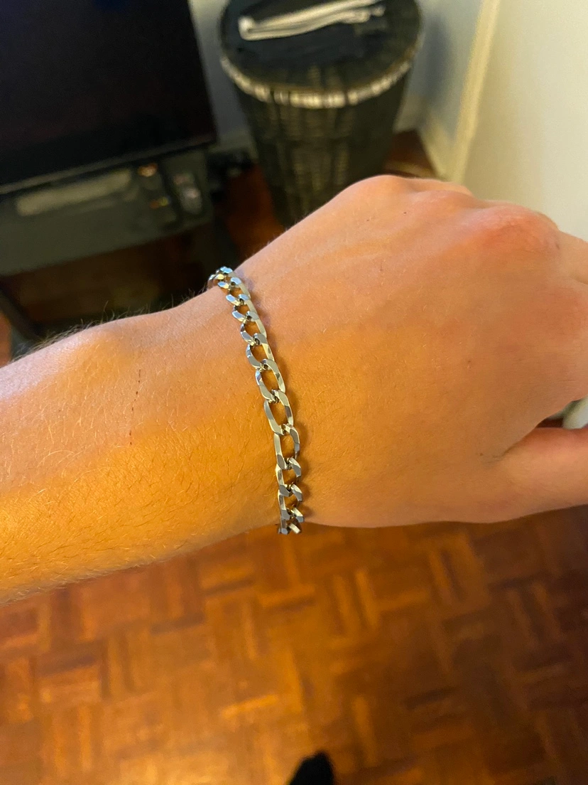 126This bracelet is approximately 8 inches long. It is made of stainless steel crafted in Italy. $5 each or $5 for both. Contact for more info.