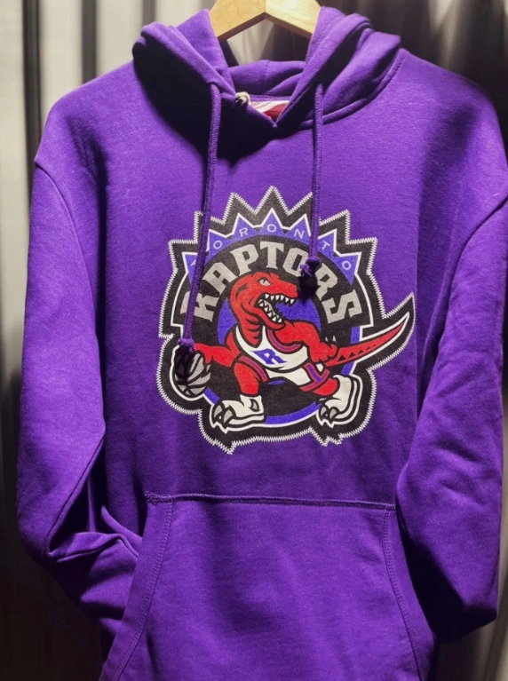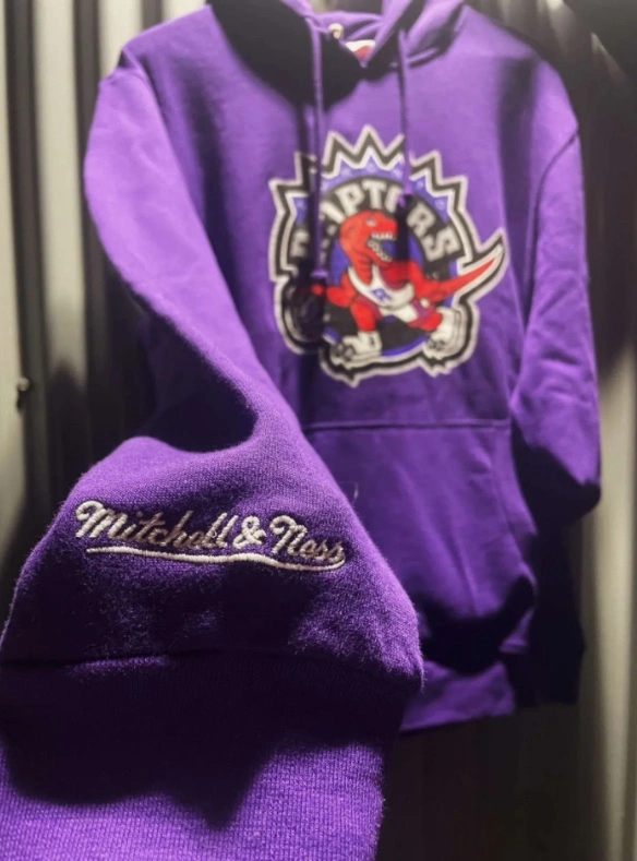 126Purple Mitchell & Ness hoodie with the Toronto Raptors logo.
