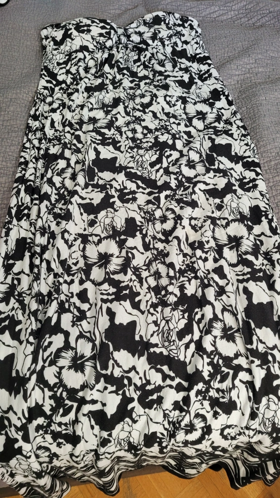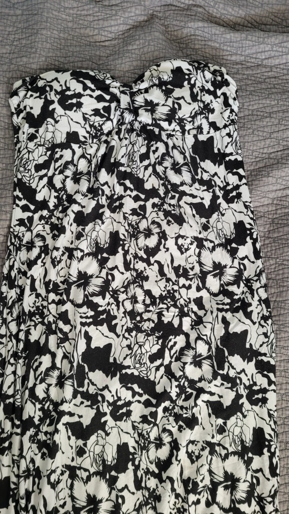 Flowy maxi dress with a strapless bodice and a floral print. used, in great condition, size XL