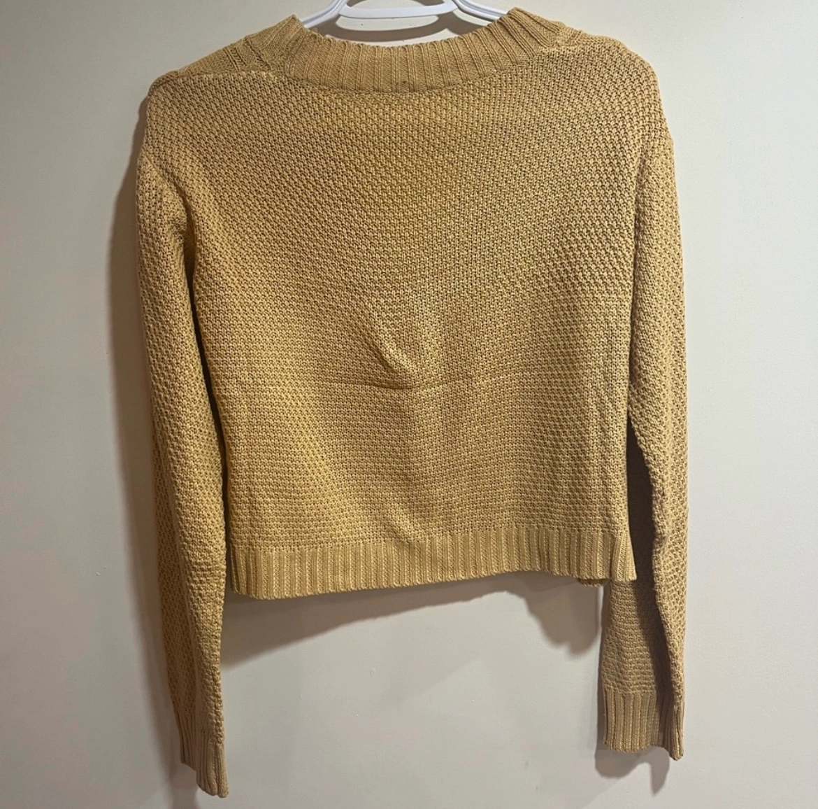 Mustard yellow crochet knit cardigan NWOT