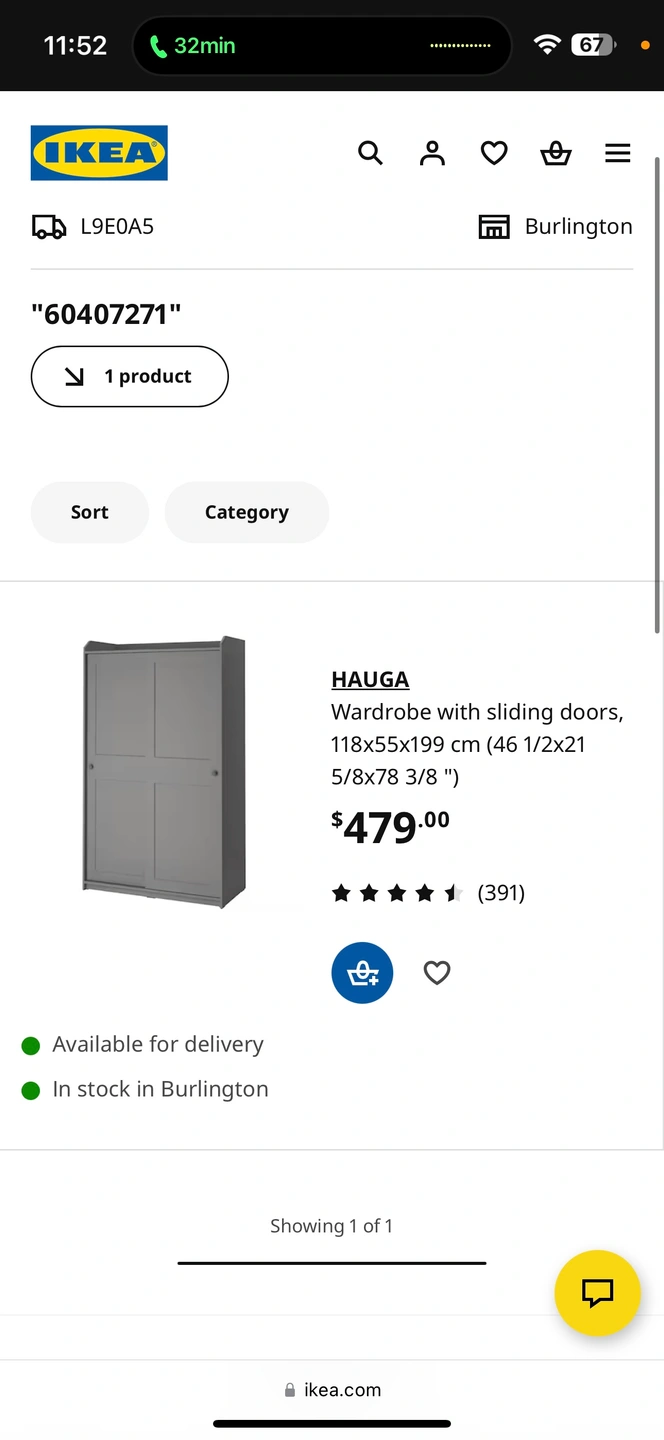 Grey wardrobe with sliding doors. Comes with shelving. Brand new in box. Buyer is responsible for assembly and pickup. Details in picture. New one around $500. Ask $250