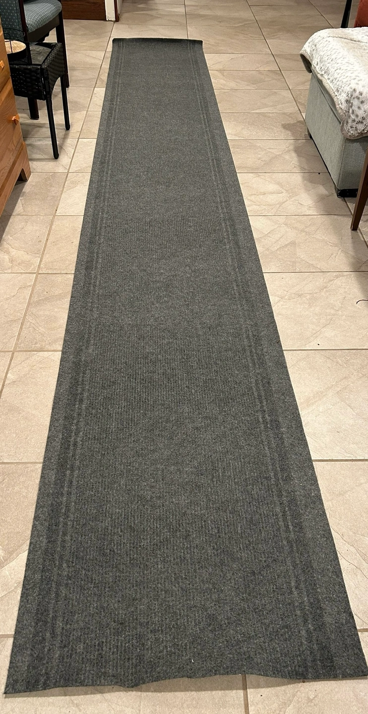 1000+Gray runner rug. It is 2 feet wide and 14 feet long. Perfect for a hallway or entryway. No longer have area to use this rug and would like to find a home that could use it.