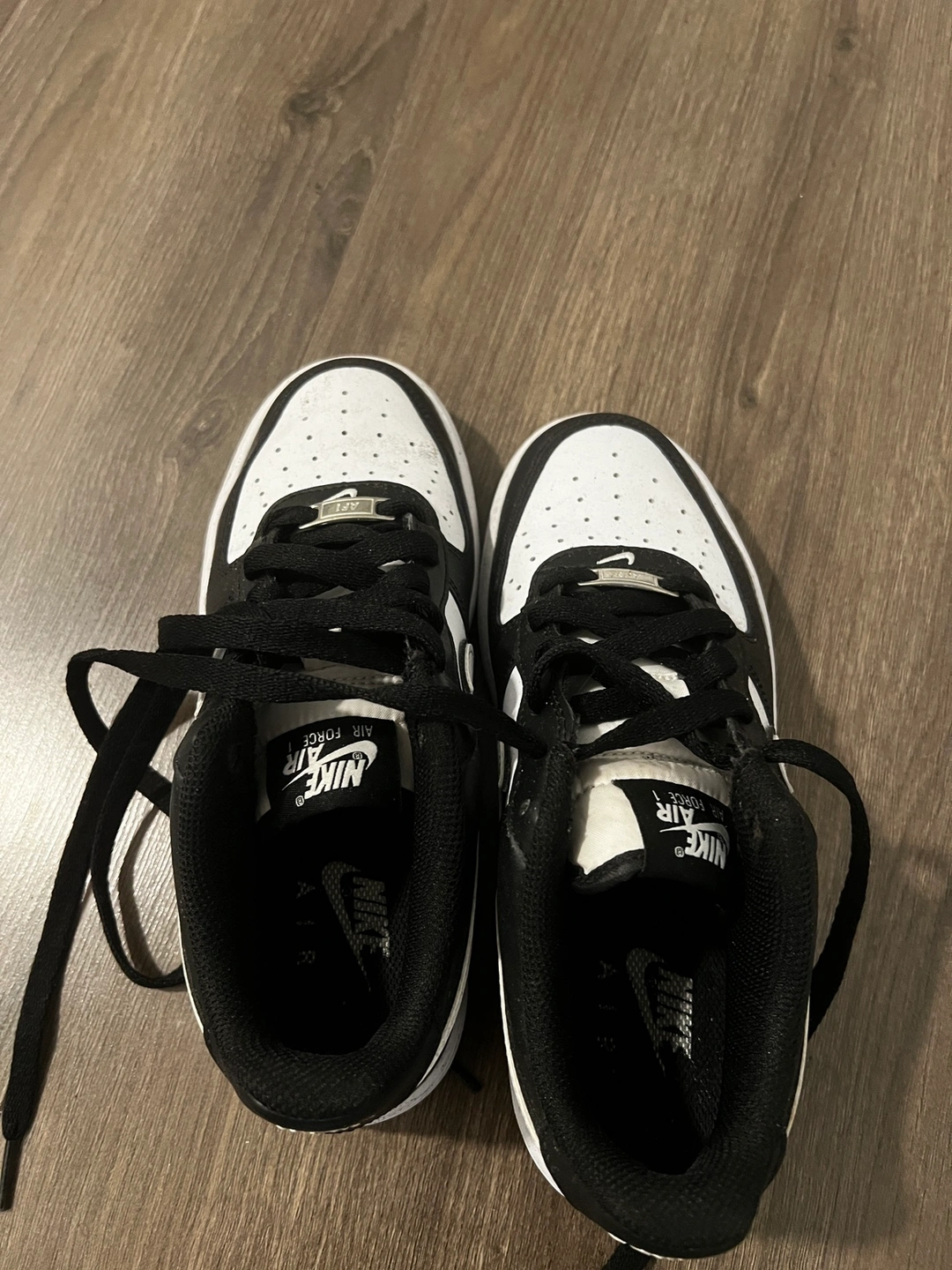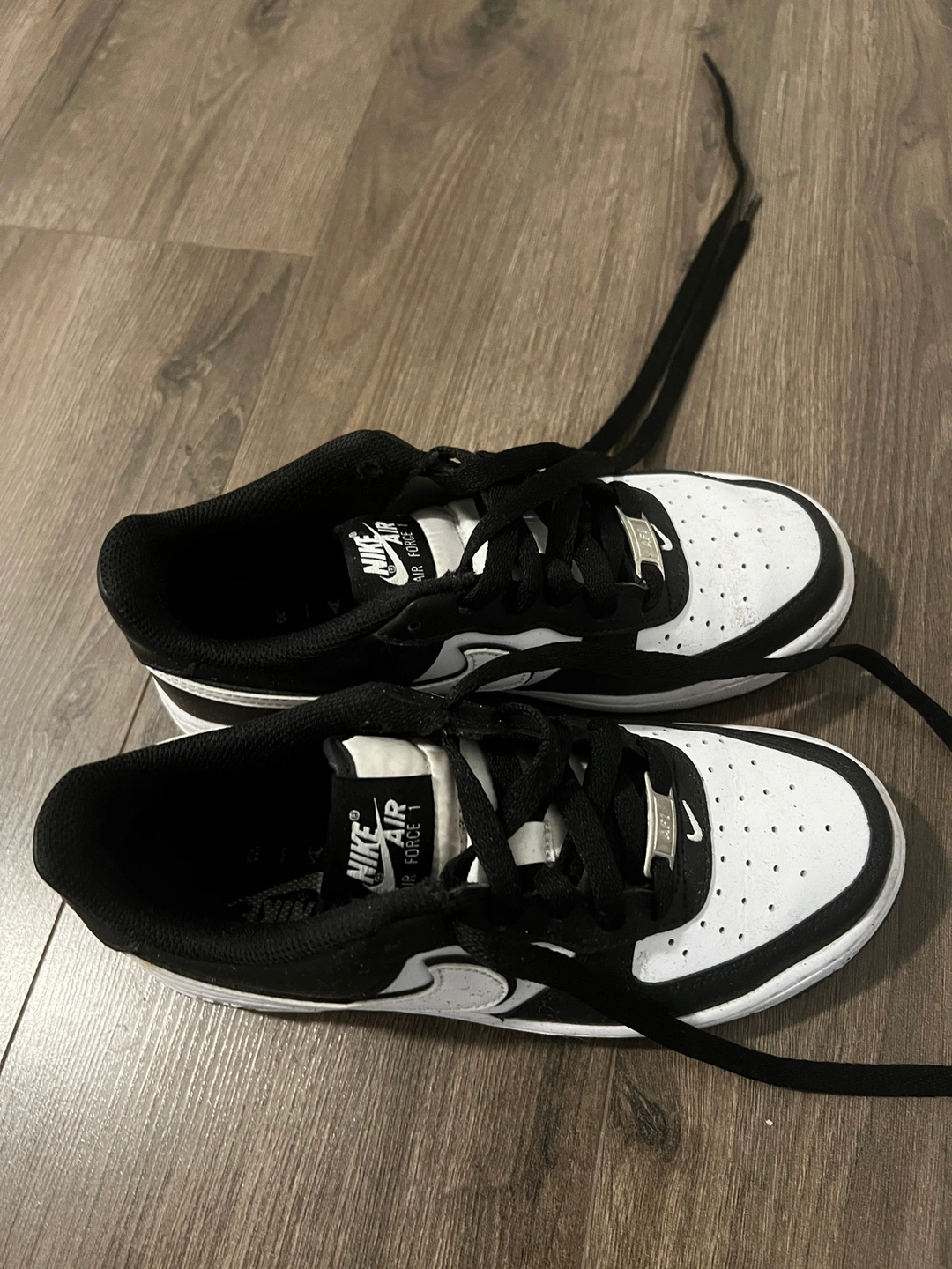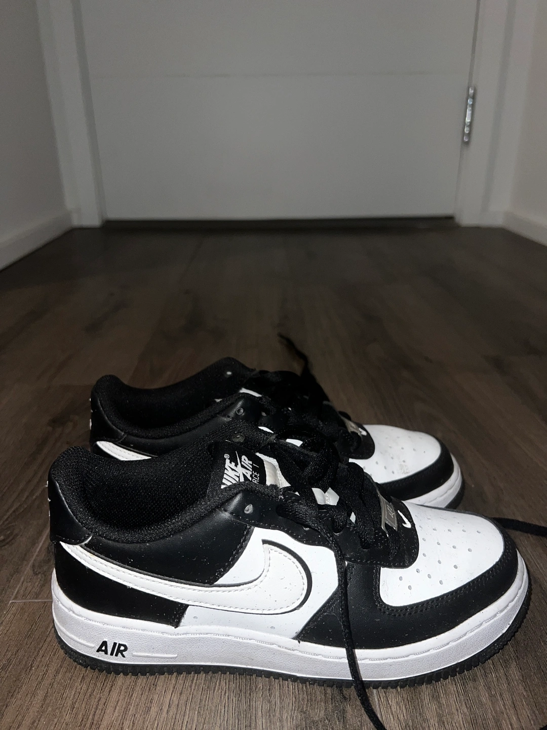 Nike Air Force 1 Panda, white swoosh- UNISEX. Size- 4Y UK-3.5 Shoes worn only 1time. Very clean sole like never used. No marks, stains, scratches or smell!! Comes with box Message for more details and deals. Price is negotiable!!