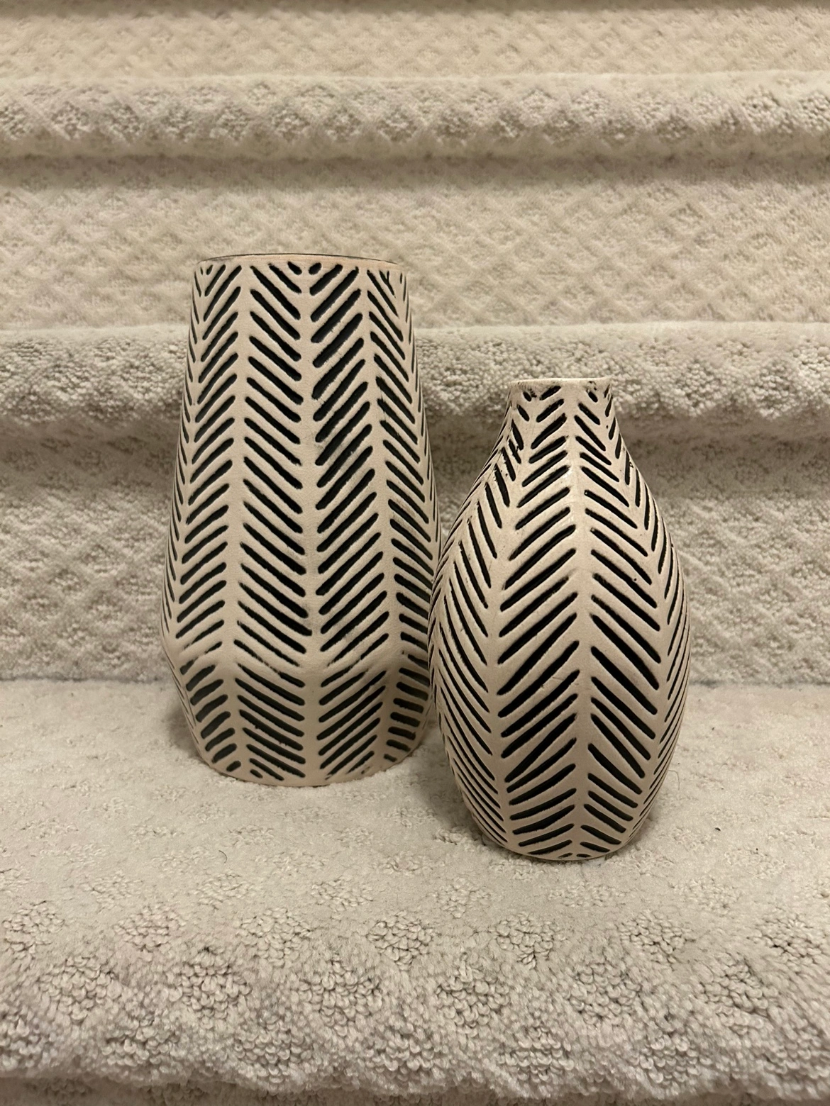 Buy & SellBlack and White Geometric VasesBlack and White Geometric Vases$15Set of two vases with a black and white geometric pattern. $15 for both. Pick up in Richmond Hill or North Etobicoke.WHERE TO MEETNorth EtobicokeView MapSELLERMickiThistletown504 reviews0 chats·0 favorites·25 views