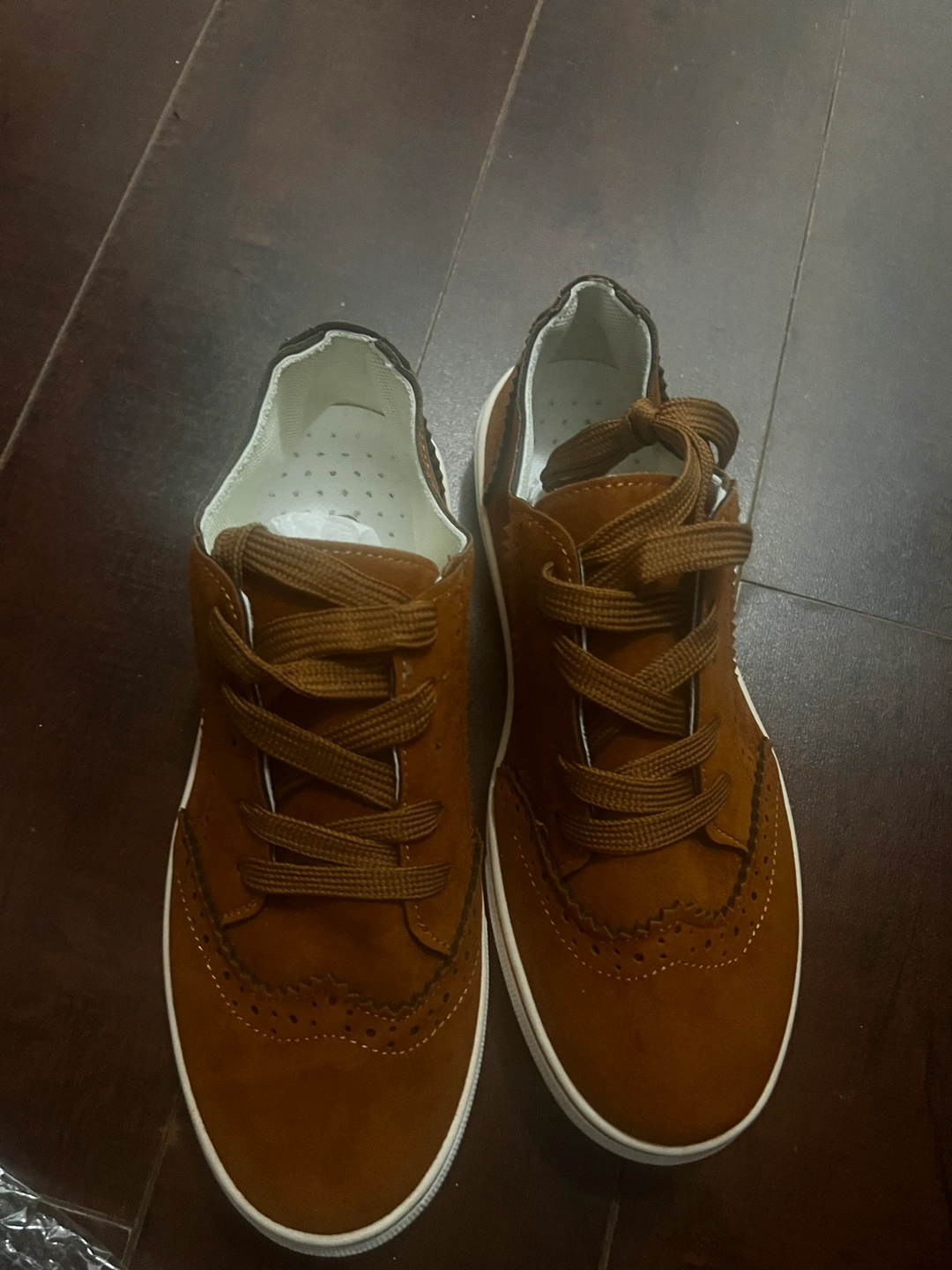 464These are brown suede sneakers with a white sole. They are a lace-up style with a wingtip design.pick up 4140 Bathurst